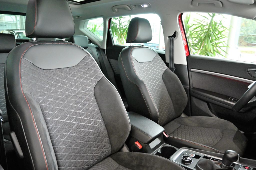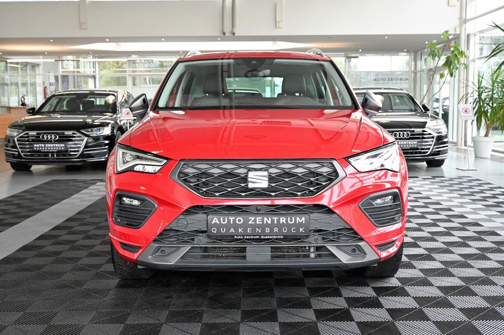 Dieser gepflegte SEAT Ateca aus dem Jahr 2022 überzeugt durch seine umfangreiche Ausstattung und moderne Technologie. Mit nur einem Vorbesitzer und lückenloser Servicehistorie präsentiert sich dieses SUV in hervorragendem Zustand. Der 150 PS starke Dieselmotor mit Frontantrieb und Automatikgetriebe bietet eine ausgewogene Kombination aus Leistung und Effizienz (Euro 6d).Im Innenraum erwarten Sie Teilledersitze in Schwarz, ein digitales Cockpit mit Touchscreen, Navigationssystem und Sprachsteuerung. Die 2-Zonen-Klimaautomatik, beheizbare Sitze und das beheizte Lenkrad sorgen für Komfort in jeder Jahreszeit. Das Panorama-Schiebedach und die Ambientbeleuchtung schaffen eine angenehme Atmosphäre.