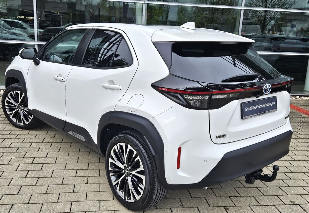 6 Lautsprecher, Ablagetasche an Vordersitzlehnen, Airbag Fahrer-/Beifahrerseite, Aktive Kopfstützen vorn, Ambiente-Beleuchtung vorn (LED), Audiobedienung am Lenkrad, Audiosystem: Multimedia Toyota Touch, Autom. Begleitfunktion der Beleuchtung (Follow me home, FMH), Außenspiegel elektr. verstell- und heizbar, Bremsassistent, Cargo-Paket, Dachantenne, Elektr. Bremskraftverteilung, Fahrassistenz-System: Berganfahrkontrolle (HAC), Fahrassistenz-System: Eco-Anzeige für verbrauchsoptimiertes Fahren, Fahrassistenz-System: Müdigkeitserkennungs-Sensor, Fahrassistenz-System: Park-Assistent (Advanced Park), Fahrassistenz-System: Pre-Collision-System (PCS), Fahrassistenz-System: Sicherheitssystem Toyota Connect mit automatischem Notruf (eCall), Fahrassistenz-System: Spurhalteassistent (LDA), Fahrassistenz-System: Verkehrszeichenerkennung (RSA), Fensterheber elektrisch vorn + hinten, Heckleuchten LED, Heckspoiler, Hybrid 85 kW (Motor 1,5 Ltr. - 68 kW), Innenraumfilter: Staub- und Pollenfilter mit Aktivkohlefilter, Isofix-Kindersitz-System, Karosserie: 5-türig, Kindersicherung elektr. betätigt, Klimaautomatik 2-Zonen, Kopf-Airbag-System, Kopfstützen hinten, Lendenwirbelstütze Sitz vorn links, elektr. verstellbar, Lenksäule (Lenkrad) verstellbar, LM-Felgen, Multimedia Display (8,0 Zoll), Navigationssystem (Touch & Go), Nebelscheinwerfer LED, Parkbremse elektrisch (EPB), Radstand 2560 mm, Reifen-Reparaturkit, Reifendruck-Kontrollsystem, Safety-Paket, Schadstoffarm nach Abgasnorm Euro 6d, Schalt-/Wählhebelgriff Leder, Seitenairbag vorn, Seitenscheiben hinten und Heckscheibe dunkel getönt (Privacy Glass), Service-System: MyT-Connected Services, Sitz vorn links höhenverstellbar, Sitz vorn rechts höhenverstellbar, Sitzbezug / Polsterung: Stoff/Leder, Smartphone-Integration x-connect (Apple CarPlay und Android Auto), Sonnenblenden mit Spiegel (beleuchtet), Steckdose (12V-Anschluß) in Mittelkonsole, Steckdose (12V-Anschluß) Koffer-/Laderaum, Stoßfänger Wagenfarbe, Türgriffe außen Wagenfarbe, Uni-Lackierung, Verglasung hinten abgedunkelt, Warnanlage für Sicherheitsgurte hinten, Warnanlage für Sicherheitsgurte vorn, Winter-Paket