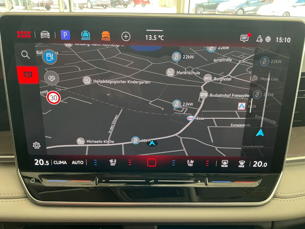 Navigationssystem; Soundsystem "Harman Kardon", 10+1 Lautsprecher, 700 Watt Gesamtleistung, digitaler 16-Kanal-Verstärker, Subwoofer; 2 USB-C-Schnittstellen vorn, 2 USB-C-Ladebuchsen an der Mittelkonsolehinten; Ladeleistung bis zu 45 W; Telefonschnittstelle "Comfort" mit induktiver Ladefunktion für 2 Smartphones, Ladeleistung bis zu 15 W; Digitaler Radioempfang DAB+; App-Connect Wireless für Apple CarPlay und Android Auto; Sprachassistent IDA; Fahrerlebnisschalter inkl. Innenraumerlebnis "Atmospheres"; Vorbereitet für "VW Connect" und "VW Connect Plus"