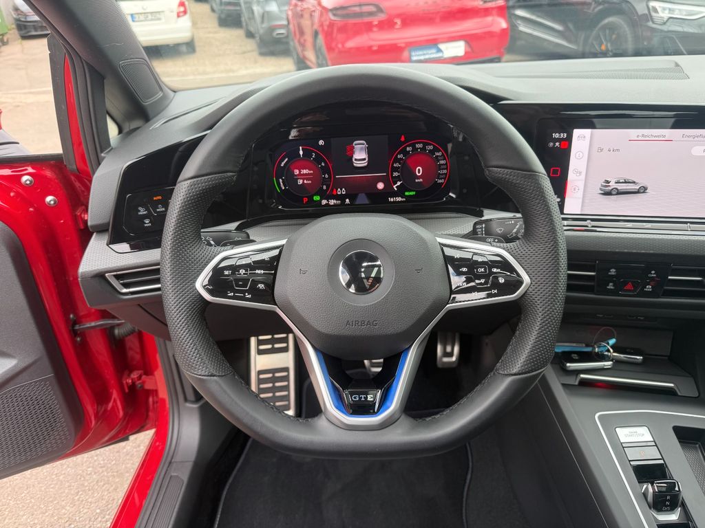3-Punkt-Sicherheitsgurt hinten mitte, Abbiege- und Allwetterlicht / Schlechtwetter-Licht, Airbag Fahrer-/Beifahrerseite, Beifahrerairbag abschaltbar, Akustischer Fußgängerschutz, Außensound (e-sound), Ambiente-Beleuchtung (30 Farben), Antennen-Diversity, App-Connect inkl. App-Connect Wireless (Apple CarPlay, Android Auto), Ausstattung GTE, Automatische Fahrlichtschaltung (ALS) mit Leaving Home / Coming-Home-Lichtfunktion, Außenspiegel mit Umfeldleuchte und Projektionsfunktion, Außenspiegel Wagenfarbe, Bremsassistent, Dachspoiler, Diebstahlsicherung für Räder (Felgenschlösser), Digital Cockpit (Instrumentenanzeige digital), Einparkhilfe vorn und hinten, Elektromotor 70 kW (Hybridantrieb), Elektron. Differentialsperre (XDS), Elektron. Stabilitäts-Programm (ESP) mit Bremskraftverstärker elektro-mechanisch, Fahrassistenz-System: Abbiegebremsfunktion und Ausweichunterstützung, Fahrassistenz-System: Fahrprofilauswahl, Fahrassistenz-System: Müdigkeitserkennung, Fahrassistenz-System: Spurhalteassistent (Lane Assist), Fahrassistenz-System: Umfeldbeobachtungssystem (Front assist) mit City-Notbremsfunktion, Fahrassistenz-System: Verkehrszeichenerkennung, Fensterheber elektrisch vorn und hinten, Frontscheibe Verbundglas getönt, Fußgänger-Schutzsystem (passiv), Fußmatten Textil, Fußraumbeleuchtung vorn LED (Farbe einstellbar), Geschwindigkeits-Begrenzeranlage, Hybrid 180 kW Plug-in (Motor 1,4 Ltr. - 110 kW TSI), Innenausstattung: Dekoreinlagen Black Metal Chrome, Isofix-Aufnahmen für Kindersitz an Beifahrersitz und Rücksitz (inkl. i-Size-Kindersitze), Karosserie: 5-türig, Keyless-Start, Klimaanlage Climatronic 3-Zonen inkl. Fondbedienung, Kopfstützen hinten (3-fach), Ladekabel (Wechselstrom), Lautsprecher (7, vorn und hinten), LED Lichtleiste zwischen Scheinwerfer und Türgriffschalen außen beleuchtet, Lendenwirbelstützen vorn, Lenksäule (Lenkrad) mechan. verstellbar, Höhen-/Längsverstellung, Leseleuchten vorn und hinten LED, Leuchtweitenregelung automatisch, Mittelarmlehne vorn höhen-/längsverstellbar, Mobile Online Dienste Vorbereitung We Connect und We Connect Plus, Mobiltelefon Schnittstelle mit kabelloser Ladefunktion, Multimedia-Schnittstelle 2 x USB (Typ C) vorn und 2 x USB-Ladeanschluß (Typ C) Mittelkonsole hinten, Nebelschlussleuchte, Nichtraucher-Paket, Notrufsystem, Otto-Partikelfilter (OPF), Parkbremse elektrisch mit Auto-Hold-Funktion, Pedale Edelstahl, Plug-in Hybrid, Progressivlenkung, Radioempfang digital (DAB+), Reifen-Reparaturkit (Tire Mobility Set), Reifenkontroll-Anzeige, Rücksitzlehne geteilt mit Mittelarmlehne, Schadstoffarm nach Abgasnorm Euro 6d, Seitenairbag vorn mit Kopf-Airbag-Einheit, Service-System: Intelligente Fahrzeugvernetzung (Car2X), Sicherheitsgurte vorn mit Gurtstraffer, höhenverstellbar, Sitzbezug / Polsterung: Stoff Scale Paper, Sitze vorn höhenverstellbar, Sitze: Top-Sportsitze vorn, Sonnenblenden mit Spiegel (beleuchtet), Sport-Fahrwerk, Stabilisator vorn, Start/Stop-Anlage, Steckdose 12V im Koffer-/Laderaum, Türgriffe außen Wagenfarbe, Verbandkasten und Warndreieck, Warnanlage für Sicherheitsgurte vorn und hinten, Wärmeschutzverglasung grün getönt (seitlich / hinten), Sitze: Top-Sportsitze vorn