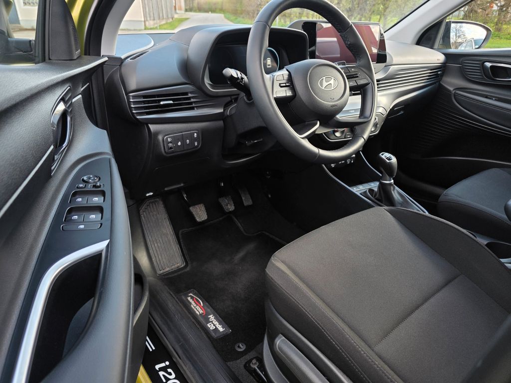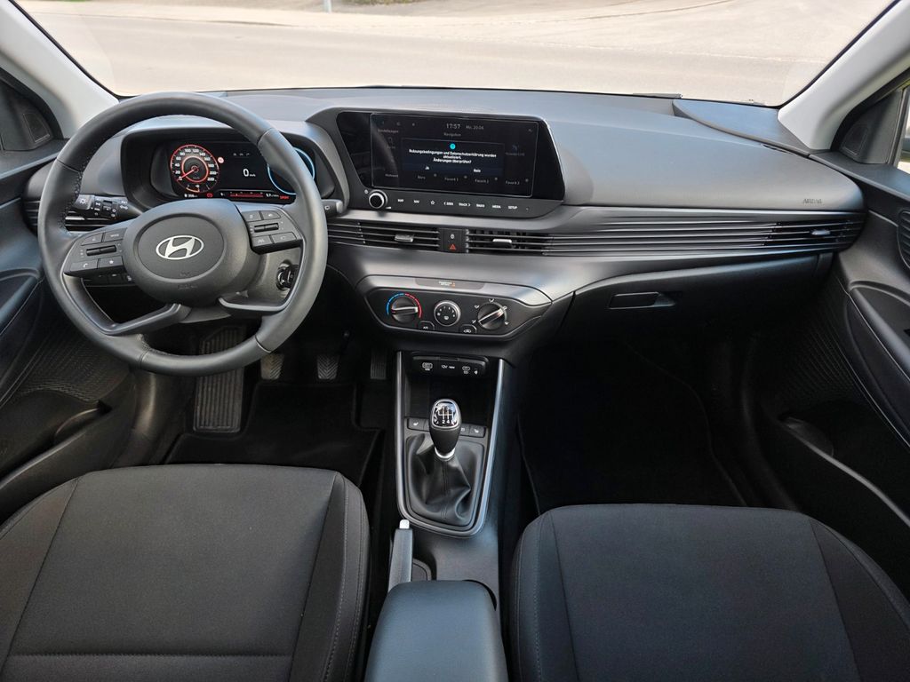 6 Lautsprecher, Airbag Beifahrerseite, Airbag Beifahrerseite abschaltbar, Airbag Fahrerseite, Ambiente-Beleuchtung, Audio-Navigationssystem, Audiosystem: Radio RDS, Außenspiegel elektr. anklappbar, Außenspiegel elektr. verstell- und heizbar, beide, Außenspiegel lackiert, Blinkleuchte in Außenspiegel integriert, Bordcomputer, Dachspoiler, Dachspoiler Wagenfarbe, Einparkhilfe hinten, Einschaltautomatik für Fahrlicht / Lichtsensor, Elektron. Stabilitätskontrolle (ESC) mit Bremsassistent, Fahrassistenz-System: aktiver Spurhalteassistent (LKAS, Lane Keep Assist System), Fahrassistenz-System: Aufmerksamkeits-Assistent, Fahrassistenz-System: Autonome Notbremsfunktion inkl. Frontkollisionswarnung (FCA), Fahrassistenz-System: Berganfahrhilfe, Fahrassistenz-System: Fahrprofilauswahl (Drive Mode), Fahrassistenz-System: Fernlichtassistent, Fahrassistenz-System: Insassenalarm (Rear Occopant Alert, ROA), Fahrassistenz-System: Multikollisionsbremse (Multi Collision Brake), Fahrassistenz-System: Sicherheitssystem mit automatischem Notruf (ERA GLONASS / eCall), Fahrassistenz-System: Verkehrszeichenerkennung, erweitert (Geschwindigkeits-Regel-/Begrenzeranlage), Fensterheber elektrisch hinten, Freisprecheinrichtung Bluetooth, Gepäck-/Laderaumleuchte, Gepäckraumabdeckung / Rollo, Gurtstraffer, Heckscheibe heizbar, Induktionsladeschale für Smartphone, Karosserie: 5-türig, Kopf-Airbag-System, Kopfstützen hinten verstellbar, Kühlergrill schwarz (glanzlackiert), Lenkrad (4-Speichen), Lenkrad heizbar, Lenksäule (Lenkrad) höhenverstellbar, Lenksäule (Lenkrad) längsverstellbar, Lifetime MapCare (Internetbasierende Dienste), LM-Felgen, Modellpflege, Motor 1,0 Ltr. - 74 kW TGDI KAT, Otto-Partikelfilter (OPF), Radioempfang digital (DAB+), Reifen-Reparaturkit, Reifendruck-Kontrollsystem, Rückfahrkamera, Rücksitzlehne geteilt/klappbar, Schadstoffarm nach Abgasnorm Euro 6d, Schalt-/Wählhebelgriff Leder, Seitenairbag vorn, Service-System: Remote Services (Blue Link), Sicherheitsgurte vorn höhenverstellbar, Sitz vorn links höhenverstellbar, Sitzbezug / Polsterung: Stoff, Sitzheizung vorn, Sonnenblenden mit Spiegel (beleuchtet), Start/Stop-Anlage, Steckdose (12V-Anschluß) vorn, Türgriffe außen Wagenfarbe, USB-Anschluss (Typ C), USB-Anschluss hinten, USB-Anschluss hinten (Typ C), USB-Anschluss Mittelkonsole, Verglasung getönt, Warnanlage für Sicherheitsgurte, Fahrer-/Beifahrerseite, SmartLink (Apple CarPlay)