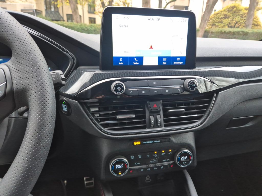 Ambiente-Beleuchtung vorn (LED), Antischlupfregelung (ASR), Audio-Navigationssystem Ford mit AppLink, Außenspiegel elektr. anklappbar, Außenspiegel elektr. verstell- und heizbar, Body-Styling-Paket, Bordcomputer, Dachhimmel Stoff, dunkel, Dachreling schwarz, Doppelendrohr Auspuffanlage, Eco-Anzeige für verbrauchsoptimiertes Fahren (EcoCoach), Fahrassistenz-System: Notbrems-Assistent, Fahrassistenz-System: Post-Collision-System, Fahrassistenz-System: Pre-Collision-System, Fahrassistenz-System: Spurhalteassistent, Fensterheber elektrisch vorn + hinten mit Komfortschließung, FordPass Connect inkl. eCall, Fußmatten ST-Design, Gepäckraumabdeckung / Rollo, Getriebe Automatik - Typ: 8F40 (8-Stufen), Heckleuchten LED, Induktionsladeschale für mobile Endgeräte, Innenspiegel mit Abblendautomatik, Intelligent Protection System (IPS), Isofix-Aufnahmen für Kindersitz, Karosserie: 5-türig, Kindersicherung elektrisch, Klimaautomatik 2-Zonen, Kofferraumdeckel / Heckklappe elektr. betätigt (Öffnung, sensorgesteuert), Kombiinstrument Digitalanzeige 12,3 Zoll, Kopfstützen vorn 4-fach verstellbar, Lenkrad (Sport/Leder, ST), Lenksäule (Lenkrad) höhen-/längsverstellbar, LM-Felgen, Mittelarmlehne hinten, Motor 2,0 Ltr. - 140 kW EcoBlue KAT, My Key (2. Fahrzeugschlüssel programmierbar), Parkbremse elektrisch mit Auto-Hold-Funktion, Parkpilotsystem vorn und hinten, Radstand 2710 mm, Reifendruck-Kontrollsystem, Rücksitzlehne geteilt, Rücksitzlehne klappbar, Schadstoffarm nach Abgasnorm Euro 6d, Schalt-/Wählhebelgriff Aluminium, Scheibenrahmen schwarz, Scheinwerfer mit Ausschaltverzögerung, Scheinwerfer-Assistent mit Tag-/Nachtsensor, SCR-System (AdBlue-Technologie), Sitz vorn links elektr. verstellbar (10-fach), Sitz vorn rechts verstellbar (8-fach), Sitzbezug / Polsterung: Kunstleder / Stoff Wildleder Optik, Sitzheizung vorn, Sonnenblende links mit Spiegel (beleuchtet), Sonnenblende rechts mit Spiegel (beleuchtet), Sport-Fahrwerk, Sportsitze, Start/Stop-Anlage, Verglasung hinten abgedunkelt (Privacy Glass)
