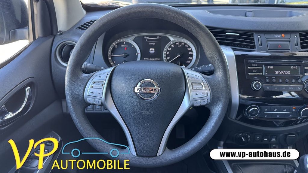 Weitere Ausstattung:6 Lautsprecher, Airbag Beifahrerseite abschaltbar, Airbag Fahrer-/Beifahrerseite, Audiobedienung am Lenkrad, Audiosystem: Radio mit CD- und MP3-Player, Automatische Fahrlichtschaltung, Außenspiegel elektr. anklappbar, Außenspiegel elektr. verstellbar, Außenspiegel heizbar, Außenspiegel schwarz, Außentemperaturanzeige, Bremsassistent (Nissan Brake-Assist), Coming-Home-Lichtfunktion (Friendly Lightning), Differentialsperre mit begrenztem Schlupf, Fahrassistenz-System: Autonomer Notbrems-Assistent, Fahrassistenz-System: Bergabfahr-Assistent, Fahrassistenz-System: Berganfahr-Assistent, Fahrer-Informations-System (FIS) mit Farbdisplay, Fensterheber elektrisch hinten, Freisprechanlage Bluetooth, Frontscheibe mit Bandfilter oben, Geländeuntersetzung, Gurtstraffer, Heckscheibe heizbar, Isofix-Aufnahmen für Kindersitz, Karosserie/Aufbau: Doppelkabine (Double-Cab), Karosserie/Aufbau: Pick-Up, Knieairbag Fahrerseite, Kopf-Airbag-System, Kopfstützen hinten, Lastenverankerung / Verzurrösen, Lenksäule (Lenkrad) verstellbar, LM-Felgen, Luftdüsen hinten, Motor 2,3 Ltr. - 140 kW dCi Diesel KAT, Radioempfang digital (DAB), Radstand 3150 mm, Reserverad in Fahrbereifung, Schadstoffarm nach Abgasnorm Euro 6, Scheibenwischer mit Intervallschaltung, Schmutzfänger hinten, Schmutzfänger vorn, Seitenairbag, Sitz vorn links höhenverstellbar, Sitzbezug / Polsterung: Stoff, Sitzheizung vorn, Start-Stop-Knopf, Start/Stop-Anlage, Steckdose (12V-Anschluß), Stoßfänger hinten verchromt, Stoßfänger vorn Wagenfarbe, USB-Schnittstelle, Sitzheizung