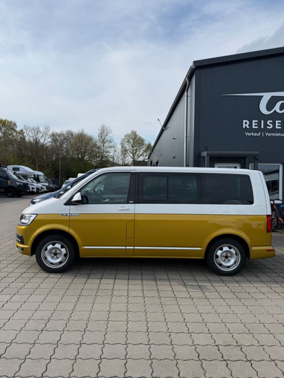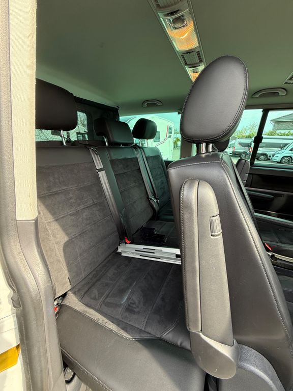 Abdeckung Schiebetürleiste, Airbag Beifahrer abschaltbar, Airbag Fahrer-/Beifahrerseite, Armaturentafel Komfort, Audiosystem Composition Media (Radio/CD-Player, MP3-Wiedergabefunktion), Ausstattungs-Paket Licht + Sicht, Außenspiegel elektr. verstell-, heiz- und anklappbar, Außenspiegel konvex, links, Außenspiegel konvex, rechts, Außenspiegel und Türgriffe außen in Wagenfarbe, Bodenbelag im Fahrerhaus: Teppich, Bodenbelag: Teppich verstärkt, Chromleisten Stoßfänger vorn, seitlich und Heckklappe unten, Doppeltonfanfare, Dämmglas-Paket, Fahrassistenz-System: Autom. Distanzregelung (ACC) und Umfeldbeobachtungssystem (Front Assist), Fahrassistenz-System: Bremsassistent (HBA), Fahrassistenz-System: Multikollisionsbremse (Multi Collision Brake), Fahrassistenz-System: Müdigkeitserkennungs-Sensor, Fahrassistenz-System: Spurwechselassistent (Side Assist / Blind Spot Sensor), Frontscheibe Dämmglas, Funkschlüssel (2) klappbar, Fußmatten Fahrerhaus: Velours, Haltegriffe A-Säulen, Handschuhfach abschließbar, Heckklappe mit Verglasung, Heckscheibe heizbar, mit Wischanlage, Innenausstattung: Dekoreinlagen Dark Silver brushed (Dekorband Black Glossy), Innenleuchten im Fahrerhaus: Leseleuchten vorn (2), Innenleuchten im Lade-/FG-Raum: Trittstufenleuchten, Innenraumfilter: Pollenfilter, Karosserie/Aufbau: Bus, Kindersicherung an den Schiebetüren, Klapptisch integriert Lade-/Fahrgastraum, Klimaautomatik Climatronic (Fahrerhaus + Lade-/Fahrgastraum), Kraftstofftank: 80 Ltr., Kühlergrill schwarz lackiert, mit Chromleisten, Ladekanten-/ Trittstufenabdeckungen in Edelstahl, Lenksäule (Lenkrad) verstellbar, LM-Felgen, Mobiltelefon Schnittstelle Bluetooth, Motor 2,0 Ltr. - 110 kW TDI, Multifunktionsanzeige Premium (Farbdisplay), Multimedia-Schnittstelle USB (iPhone / iPod) mit AUX-IN, Nichtraucher-Paket, Radstand 3000 mm, Reifen-Reparaturkit, Reifenkontroll-Anzeige, Schadstoffarm nach Abgasnorm Euro 6d-TEMP, Scheinwerfer und Heckleuchten LED, Schiebetür Lade-/Fahrgastraum rechts, SCR-System (AdBlue-Technologie), Seitenairbag / Kopfairbag (Curtain-Airbag) vorn, Seitenscheiben Dämmglas, Sitzbezug / Polsterung: Alcantara, Sitze im Fahrerhaus: Beifahrersitz Komfort, Sitze im Fahrerhaus: Fahrer- und Beifahrersitz heizbar, Sitze im Fahrerhaus: Fahrer- und Beifahrersitz höhenverstellbar, Sitze im Fahrerhaus: Fahrersitz Komfort, Sitze im Fahrerhaus: Lendenwirbelstützen Fahrer- und Beifahrersitz, Sitze im Lade-/FG-Raum: 1.Reihe, 2 Drehsitze, Sitze im Lade-/FG-Raum: 2.Reihe, 3er-Sitzbank, Sonnenblenden mit Spiegel (beleuchtet), Sonnenschutzrollo im Fahrgastraum, Start/Stop-Anlage Motor, Steckdose (12V-Anschluß) im Fahrerhaus, Stoßfänger in Wagenfarbe, Türablagekasten vorn, Verkleidung im Lade-/FG-Raum: Komfort, Zentralverriegelung mit Fernbedienung und Innenbetätigung, Zuheizer, Zul. Gesamtgewicht 3,00 t