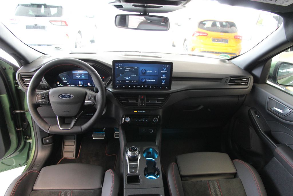 Akustischer Fußgängerschutz (Außensound, AVAS), Ambiente-Beleuchtung vorn (LED), Antischlupfregelung (ASR), Audio-Navigationssystem Ford mit AppLink, Außenspiegel elektr. anklappbar, Außenspiegel elektr. verstell- und heizbar, mit Memory, Body-Styling-Paket, Bordcomputer, Bremssättel Rot lackiert, Dachhimmel Stoff, dunkel, Dachreling schwarz, Dachspoiler (große Ausführung) Wagenfarbe, Doppelendrohr Auspuffanlage, Eco-Anzeige für verbrauchsoptimiertes Fahren (EcoCoach), Einstiegschienen mit Modell-Schriftzug, Elektromotor 97 kW (Hybridantrieb), Fahrassistenz-Paket, Fahrassistenz-System: Fahrspur-Pilot, Fahrassistenz-System: Notbrems-Assistent, Fahrassistenz-System: Post-Collision-System, Fahrassistenz-System: Pre-Collision-System mit Querverkehrs-Assistent (Kamera- und Radar-basiert), Fahrassistenz-System: Spurhalteassistent, Fahrassistenz-System: Verkehrsschildassistent, Fensterheber elektrisch vorn + hinten mit Komfortschließung, FordPass Connect inkl. eCall, Fußmatten ST-Design, Gepäckraumabdeckung / Rollo, Getriebe Automatik stufenlos - ECVT, Heckleuchten LED, Hybrid 178 kW (Motor 2,5 Ltr. - 112 kW), Induktionsladeschale für mobile Endgeräte, Innenspiegel mit Abblendautomatik, Intelligent Protection System (IPS), Intelligenter Geschwindigkeits-Begrenzer, Isofix-Aufnahmen für Kindersitz, Karosserie: 5-türig, Kindersicherung elektrisch, Klimaautomatik 2-Zonen, Kofferraumdeckel / Heckklappe elektr. betätigt (Öffnung, sensorgesteuert), Kombiinstrument Digitalanzeige 12,3 Zoll, Kopfstützen vorn 4-fach verstellbar, Lackierung Blazer-Blau uni, Lendenwirbelstütze Sitz vorn links, Lendenwirbelstütze Sitz vorn rechts, Lenkrad (Sport/Leder, ST), Lenksäule (Lenkrad) höhen-/längsverstellbar, LM-Felgen, Mittelarmlehne hinten, Modellpflege, My Key (2. Fahrzeugschlüssel programmierbar), Off-Road Multi-Meter-Anzeigen inkl. Neigungswinkel, Kompass, Parkbremse elektrisch mit Auto-Hold-Funktion, Parkpilotsystem vorn und hinten, Pedale Aluminium, Radstand 2710 mm, Reifen-Reparaturkit, Reifendruck-Kontrollsystem, Rücksitzlehne geteilt, Rücksitzlehne klappbar, Schadstoffarm nach Abgasnorm Euro 6e, Schalt-/Wählhebelgriff Aluminium, Scheibenrahmen schwarz, Scheinwerfer mit Ausschaltverzögerung, Scheinwerfer-Assistent mit Tag-/Nachtsensor, Seitenscheiben vorn Akustikglas, Sitz vorn links elektr. verstellbar (12-fach), Sitz vorn rechts elektr. verstellbar (12-fach), Sitzbezug / Polsterung: Kunstleder / Stoff Wildleder Optik, Sitzheizung vorn, Sonnenblende links mit Spiegel (beleuchtet), Sonnenblende rechts mit Spiegel (beleuchtet), Spezialausführung 2, Sport-Fahrwerk, Verglasung hinten abgedunkelt (Privacy Glass), Head-up-Display, Innenspiegel automatisch abblendend, Geschwindigkeitsbegrenzer mit vorausschauender Regelung, Regensensor, Sitzheizung vorn