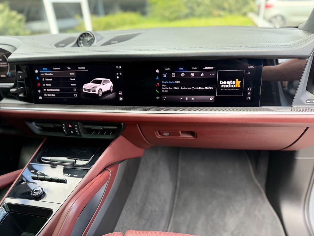 Adaptive Sportsitze inkl. Sitzverstellung 18-Wege und Memory-Paket, Ambiente-Beleuchtung, Außen-/Innenspiegel mit Abblendautomatik, Außenspiegel lackiert, Beifahrer-Display, Exterieur-Paket, Fahrassistenz-System: aktiver Park-Assistent vorn und hinten inkl. Rückfahrkamera und Surround View, Fußmatten, Head-up-Display, Heckleuchten LED, abgedunkelt, Innenausstattung: Clubleder, Walknappa, Bicolor, Interieur-Paket: Carbon, Klimaautomatik 4-Zonen, Komfortzugang (Schlüssellose Türentriegelung), Kopfstützen vorn und hinten mit Porschewappen, Lenkrad heizbar (GT Sport / Leder) mit Multifunktion, Schaltfunktion und Lenkradblende Carbon, LM-Felgen vorn/hinten: 10x22 / 11,5x22 (Exclusive Design Sport Rad, Platin-Silber), Metallic-Lackierung, Panorama-Schiebedach zweiteilig vorn elektrisch, Radioempfang digital (DAB+), Radnaben - Abdeckungen Porschewappen farbig, Schriftzug Porsche + Modellbezeichnung lackiert, Servolenkung Plus (geschwindigkeitsabhängig), Sitzbelüftung vorn, Soft Close Türen, Sound-System BOSE, Sport-Auspuffanlage, Endrohre Bronze, Sport-Design-Paket schwarz, Hochglanz, Tankdeckel Alu-Optik, Verglasung hinten abgedunkelt (Privacyverglasung)