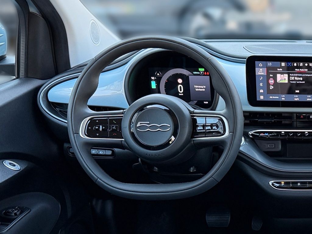 6 Lautsprecher, Airbag Fahrer-/Beifahrerseite, Ambiente-Beleuchtung, Antriebs-Schlupfregelung (ASR), Armaturenbrett farbig (Wagenfarbe), Autom. Begleitfunktion der Beleuchtung (Follow me home), Außenspiegel Wagenfarbe, Beifahrerairbag abschaltbar, Einschaltautomatik für Fahrlicht / Lichtsensor, Elektromotor 87 kW (cont. 43 kW), Fahrassistenz-System: Aufmerksamkeits-Assistent, Fahrassistenz-System: Autonomer Notbrems-Assistent (AEB), Fahrassistenz-System: Bremsassistent, Fahrassistenz-System: Spurhalteassistent, Fahrassistenz-System: Verkehrszeichenerkennung, Fahrmodusschalter, Halterung Smartphone, Heckleuchten LED, Heckscheibe heizbar, HV-Batterie 42 kWh (Lithium-Ionen), Infotainment-System: UConnect 5 mit Navigationssystem, DAB+ und Bluetooth-Freisprecheinrichtung (Touchscreen 10,25"), Instrumentenanzeige Farbdisplay, 7 Zoll, Karosserie: 3-türig, Klimaautomatik, Kopf-Airbag-System vorn, Kopf-Airbag-System vorn und hinten, Kopfstützen hinten, Ladekabel mit Typ 2-Stecker (Mode 3), Lenkrad mit Multifunktion, Lenksäule (Lenkrad) höhenverstellbar, Mobile Online Dienste UConnect Live, Nebelschlussleuchte, Notrufsystem (eCall), One Pedal Drive (elektronisches Gaspedal), Parkbremse elektrisch, Radioempfang digital (DAB+), Schnellladefunktion 85 kW (DC), Seitenairbag vorn, Sitzbezug / Polsterung: Stoff, Sitzverstellung vorn links (4-fach), Sitzverstellung vorn rechts (4-fach), Smartphone Schnittstelle (Apple CarPlay & Android Auto), Sonnenblenden mit Spiegel (beleuchtet), Steckdose (12V-Anschluß) vorn, Tagfahrlicht LED, USB-Schnittstelle, Wärmeschutzverglasung