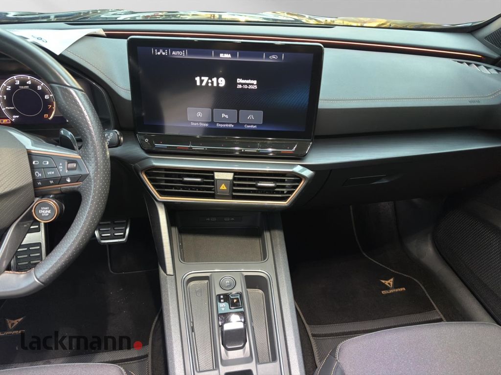 - Weiteres: Antriebs-Schlupfregelung (ASR), Leuchtweitenregelung automatisch, Sitzbezug / Polsterung: Stoff, Antriebsart: Allradantrieb, Rückfahrkamera, Reserverad als Notrad, Isofix-Aufnahmen für Kindersitz an Rücksitz, Getriebe 7-Gang - Doppelkupplungsgetriebe DSG, Rücksitzlehne geteilt/klappbar (1/3-2/3), Einparkhilfe hinten, Außenspiegel elektr. verstell-, heiz- und anklappbar mit Spiegelabsenkung und Welcome Light, Lendenwirbelstütze Sitz vorn rechts, verstellbar, Notrufsystem, Nebelscheinwerfer LED mit Abbiegelicht, Rücksitzlehnen umklappbar mit Fernentriegelung im Kofferraum, Schadstoffarm nach Abgasnorm Euro 6d, LM-Felgen, USB-Schnittstelle vorn (2-fach, Typ C), Seitenairbag vorn mitte (Central Airbag), Lenkrad heizbar (CUPRA Supersport, Leder) mit Multifunktion und Schaltfunktion, Audio-Navigationssystem mit Touchscreen Farbbildschirm, Scheinwerfer Voll-LED, Schließ-/Startsystem Kessy Advanced, Airbag Fahrer-/Beifahrerseite, Anti-Blockier-System (ABS), Tagfahrlicht LED, Wegfahrsperre (elektronisch), Kopf-Airbag-System, Gepäckraumabdeckung / Rollo, Licht- und Regensensor, Reifenkontroll-Anzeige, Seitenairbag, Dachreling schwarz, hochglänzend, Heckleuchten LED mit dynamischem Blinklicht, Mittelkonsole vorn mit Mittelarmlehne, Becherhalter, Ablagebox und Luftausströmer hinten, USB-Ladeanschlüsse (2-fach, Typ C) für 2.Sitzreihe, Ambiente-Beleuchtung Smart Ambient Light, Heckleuchten Voll-LED mit dynamischem Lichtband (Infinite Light), Metallic-Lackierung, Full Link (MirrorLink, Apple CarPlay und Android Auto), Panorama Schiebe-/Hebedach elektrisch, Adaptive Fahrwerksregelung (DCC), Automatische Distanzregelung (ACC), Beifahrerairbag abschaltbar, Blinkleuchten LED in Außenspiegel integriert, Bluetooth-Schnittstelle mit Freisprecheinrichtung, Climatronic 3-Zonen, Einstiegsleisten (Aluminium) vorn, beleuchtet, EleFahrassistenz-Paket: Travel Assist, Fahrprofilauswahl (CUPRA Drive Profile), Fensterheber elektrisch vorn und hinten mit Komfortschaltung, Fernlichtassistent, Frontkamera, getönte Scheiben - Privacy Glass, Innenspiegel mit Abblendautomatik, Kombiinstrument digital (virtual cockpit), Laderaumboden variabel, Lendenwirbelstütze, Licht- und Sicht-Paket, Lichtassistent (Coming Home, Leaving Home), Mittelarmlehne hinten, Motor 2,0 Ltr. - 228 kW 16V TSI, Müdigkeitserkennung, Parkbremse elektrisch, Parklenkassistent mit Einparkhilfe vorn und hinten, Radioempfang digital (DAB+), Servolenkung elektro-mechanisch, Sitzheizung vorn, Sitzhöhenverstellung, Sitzhöhenverstellung Fahrersitz, Sport-Schalensitze vorn, Spurhalteassistent, Start/Stop-Anlage, Totwinkel-Assistent mit Auspark-Assistent, Spurwechselassistent und Ausstiegswarnung, Umfeldbeobachtungssystem (Front assist) mit City-Notbremsfunktion, Verkehrszeichenerkennung, Wärmeschutzverglasung, Winter-Paket, ZV mit Fernbedienung