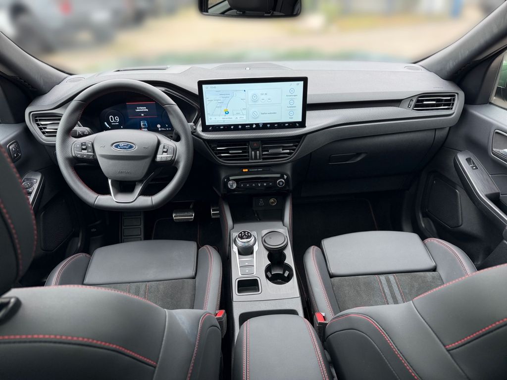 Adaptive Geschwindigkeits-Regelanlage mit Stop&Go-Funktion, Ambiente-Beleuchtung vorn (LED), Antischlupfregelung (ASR), Audio-Navigationssystem Ford mit AppLink, Außenspiegel elektr. anklappbar, Außenspiegel elektr. verstell- und heizbar, mit Memory, Body-Styling-Paket, Bordcomputer, Bremssättel Rot lackiert, Dachhimmel Stoff, dunkel, Dachreling schwarz, Dachspoiler (große Ausführung) Wagenfarbe, Doppelendrohr Auspuffanlage, Eco-Anzeige für verbrauchsoptimiertes Fahren (EcoCoach), Einstiegschienen mit Modell-Schriftzug, Ergonomiesitze vorn, Fahrassistenz-Paket, Fahrassistenz-System: Fahrspur-Pilot, Fahrassistenz-System: Fernlichtassistent (Scheinwerfer mit Abblendautomatik), Fahrassistenz-System: Notbrems-Assistent, Fahrassistenz-System: Post-Collision-System, Fahrassistenz-System: Pre-Collision-System mit Querverkehrs-Assistent (Kamera- und Radar-basiert), Fahrassistenz-System: Spurhalteassistent, Fahrassistenz-System: Verkehrsschildassistent, Fensterheber elektrisch vorn + hinten mit Komfortschließung, FordPass Connect inkl. eCall, Fußmatten ST-Design, Gepäckraumabdeckung / Rollo, Getriebe Automatik - Typ: 8F35 (8-Stufen), Heckleuchten LED, Induktionsladeschale für mobile Endgeräte, Innenspiegel mit Abblendautomatik, Intelligent Protection System (IPS), Intelligenter Geschwindigkeits-Begrenzer, Isofix-Aufnahmen für Kindersitz, Karosserie: 5-türig, Kindersicherung elektrisch, Klimaautomatik 2-Zonen, Kofferraumdeckel / Heckklappe elektr. betätigt (Öffnung, sensorgesteuert), Kombiinstrument Digitalanzeige 12,3 Zoll, Kopfstützen vorn 4-fach verstellbar, Lackierung Blazer-Blau uni, Lendenwirbelstütze Sitz vorn links, Lendenwirbelstütze Sitz vorn rechts, Lenkrad (Sport/Leder, ST), Lenksäule (Lenkrad) höhen-/längsverstellbar, LM-Felgen, Mittelarmlehne hinten, Modellpflege, Motor 1,5 Ltr. - 137 kW EcoBoost KAT, My Key (2. Fahrzeugschlüssel programmierbar), Off-Road Multi-Meter-Anzeigen inkl. Neigungswinkel, Kompass, Parkbremse elektrisch mit Auto-Hold-Funktion, Parkpilotsystem vorn und hinten, Pedale Aluminium, Radstand 2710 mm, Reifendruck-Kontrollsystem, Rücksitzlehne geteilt, Rücksitzlehne klappbar, Schadstoffarm nach Abgasnorm Euro 6e, Schalt-/Wählhebelgriff Aluminium, Scheibenrahmen schwarz, Scheinwerfer mit Ausschaltverzögerung, Scheinwerfer-Assistent mit Tag-/Nachtsensor, Seitenscheiben vorn Akustikglas, Sitzbezug / Polsterung: Kunstleder / Stoff Wildleder Optik, Sitzheizung vorn, Sonnenblende links mit Spiegel (beleuchtet), Sonnenblende rechts mit Spiegel (beleuchtet), Sport-Fahrwerk, Start/Stop-Anlage, Verglasung hinten abgedunkelt (Privacy Glass)