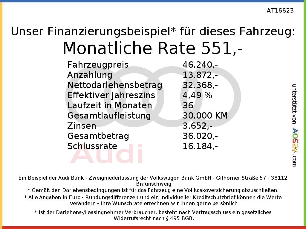 - 3 Jahre Audi Anschlussgarantie mit max. 100.000 km