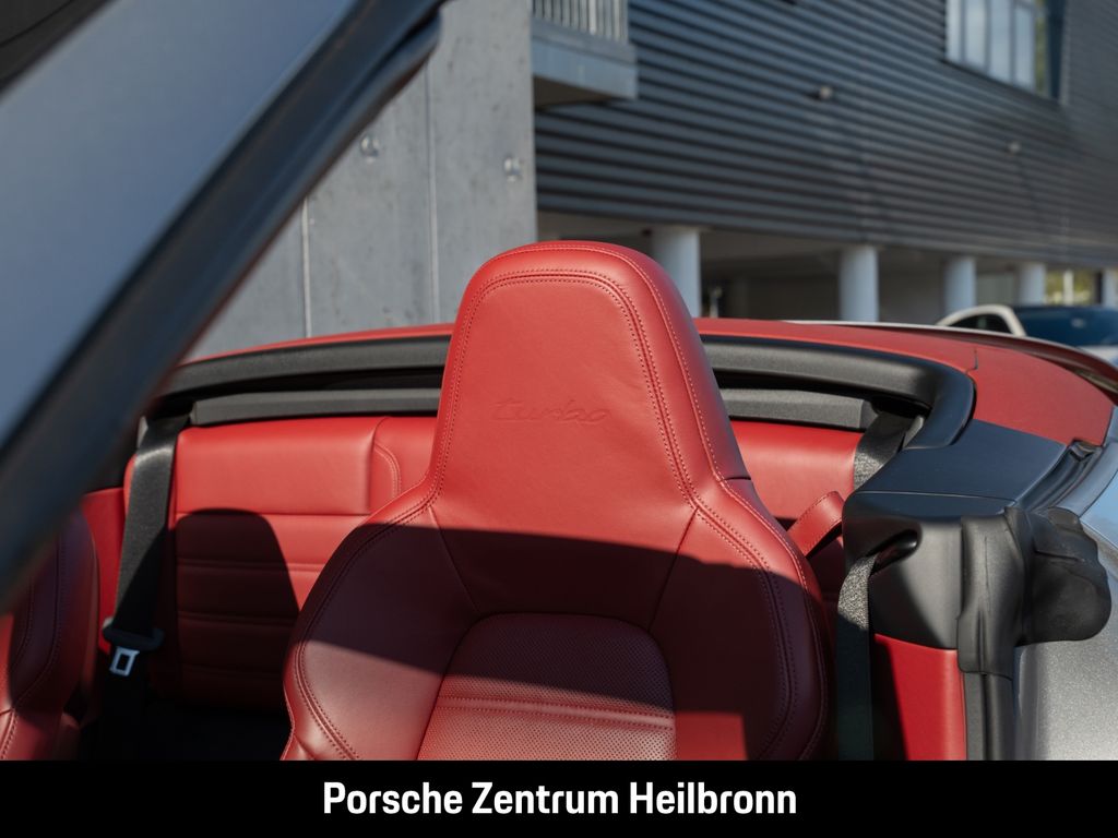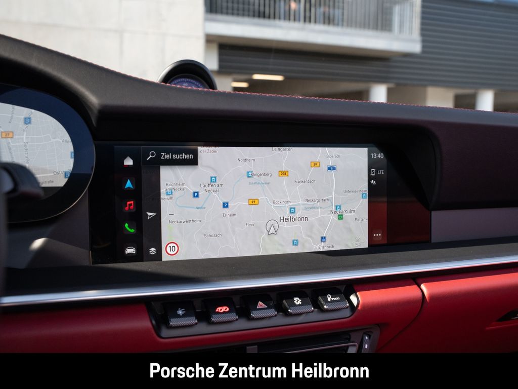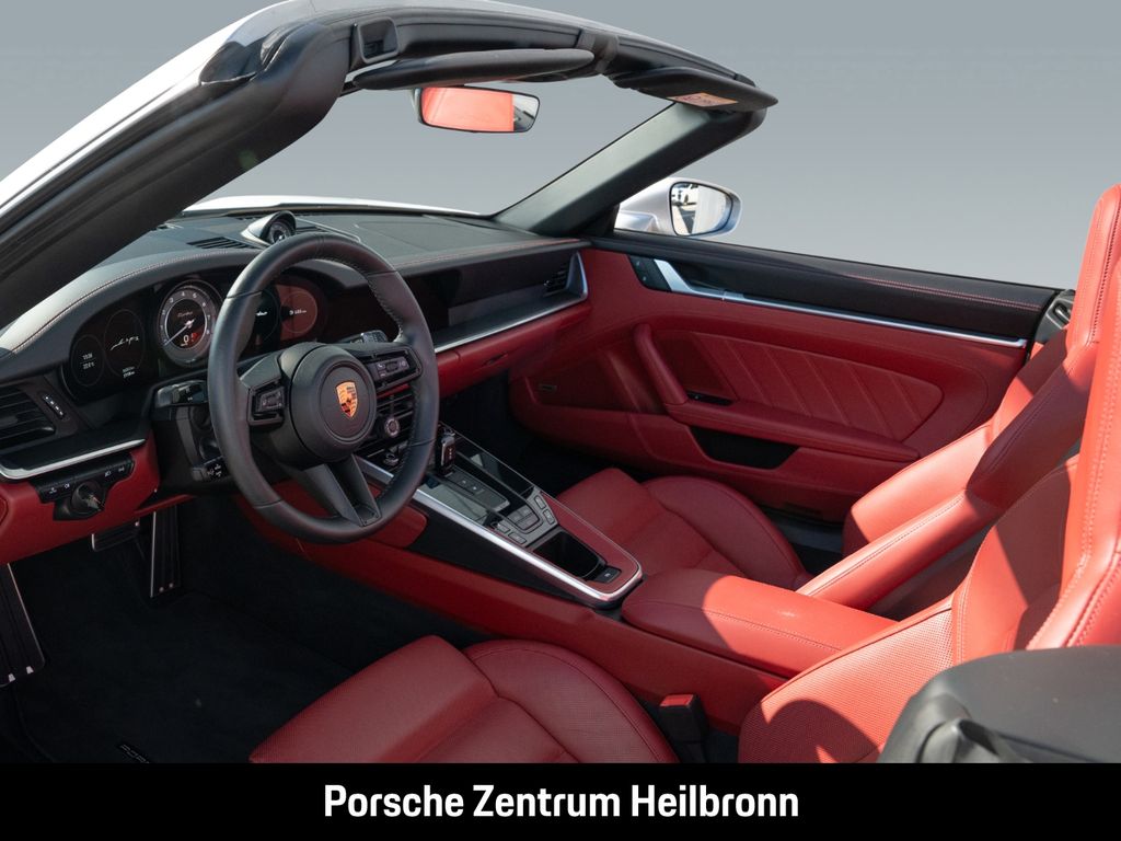 - Weiteres: (VR4) Schwellerverkleidungen lackiert in Exterieurfarbe, (6XV) Elektrisch anklappbare Außenspiegel inkl. Spiegelumfeldbeleuchtung, (6FU) Spiegelfüße lackiert in Exterieurfarbe, (AMH) Seitlicher Dekorschriftzug „PORSCHE“ schwarz, (0NA) Entfall Modellbezeichnung, (1P7) Porsche Dynamic Chassis Control (PDCC), (0P9) Sportabgasanlage (Endrohrblenden in schwarz), (1N3) Servolenkung Plus, (2UH) Liftsystem Vorderachse, (QQ2) Licht-Design-Paket, (Q1J) Adaptive Sportsitze Plus (18-Wege, elektrisch) mit Memory-Paket, (4A3) Sitzheizung vorn, (4D3) Sitzbelüftung vorn, (2PJ) GT-Sportlenkrad, beheizt, (7TM) Interieur-Paket Leder, (5HC) Interieur-Zusatzpaket Türtafel Leder, (8IU) LED-Matrix-Hauptscheinwerfer inkl. Porsche Dynamic Light System Plus (PDLS Plus), (KA6) ParkAssistent inkl. Surround View, (7Y1) Spurwechselassistent