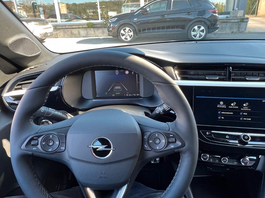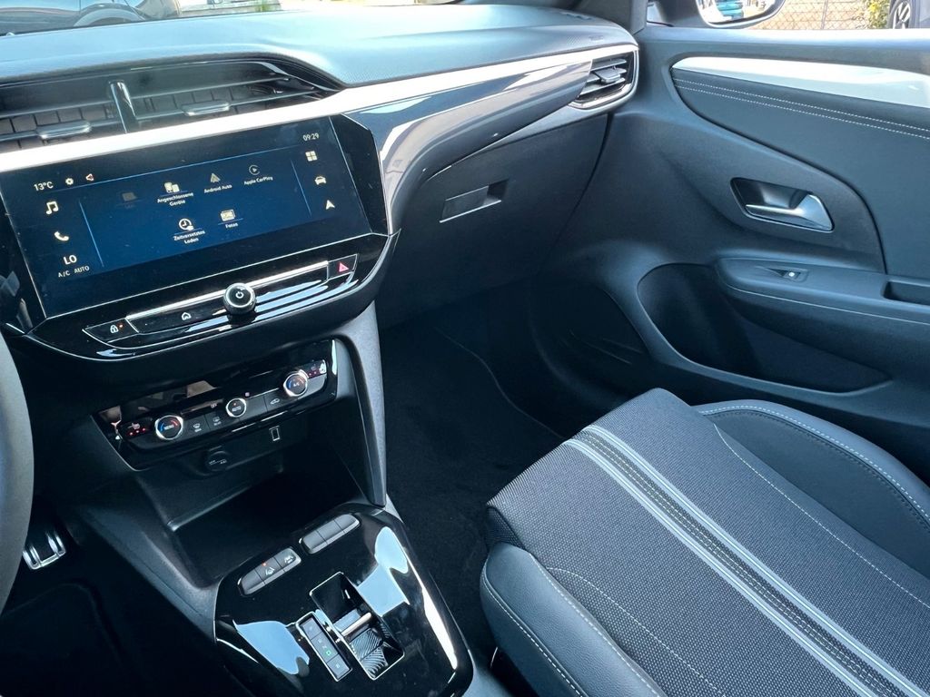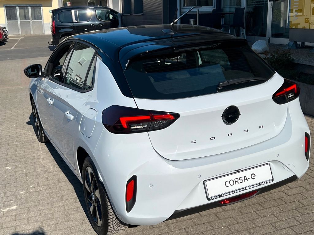 6 Lautsprecher, Airbag Fahrer-/Beifahrerseite, Akustischer Fußgängerschutz (Außensound), Audiosystem Multimedia, Außenspiegel elektr. verstell- und heizbar, elektr. anklappbar, B-Säulen schwarz Hochglanz (außen), Bordcomputer, Bremsassistent, Dachhimmel schwarz, Einparkhilfe vorn und hinten mit Parksensoren seitlich, Elektrische Schnellheizung (Quickheat), Elektrofahrzeug, Elektromotor 115 kW (cont. 62 kW), Elektron. Stabilitäts-Programm Plus (ESP), Fahrassistenz-System: Berganfahr-Assistent (HSA, Hill Start Assist), Müdigkeitserkennungs-Sensor, Spurhalteassistent, Totwinkel-Assistent, Fahrassistenz-System: Verkehrszeichenerkennung, Farbdisplay (7 Zoll), Fensterheber elektrisch vorn + hinten, Fensterheber vorn elektr. mit Einklemmschutz, Fernbedienung zur Aktivierung der Heizung/Klimaanlage, Feststellbremse elektrisch, Gepäckraumbeleuchtung (LED), Heckleuchten LED, Heckscheibenwischer, Isofix-Aufnahmen für Kindersitz an Beifahrersitz, Isofix-Aufnahmen für Kindersitz an Rücksitz, Karosserie: 5-türig, Keyless Start, Klimaautomatik, Kopf-Airbag-System, Lenkrad (Leder, vegan) mit Multifunktion, Lenksäule (Lenkrad) verstellbar, Leseleuchten vorn (2), LM-Felgen, Mittelarmlehne vorn mit Ablagefach, Modellpflege, Motor Starterknopf, Nebelschlussleuchte, Opel Connect, Parkpilotsystem vorn und hinten, Pedale Aluminium, Reifen-Reparaturkit, Rückfahrkamera mit 130° Umgebungsansicht, Rücksitzbank geteilt/klappbar (60:40), Seitenairbag vorn, Sicht-Paket, Sitzbezug Stoff / Ledernachbildung, Sportsitze vorn, Stoßfänger Sport-Design