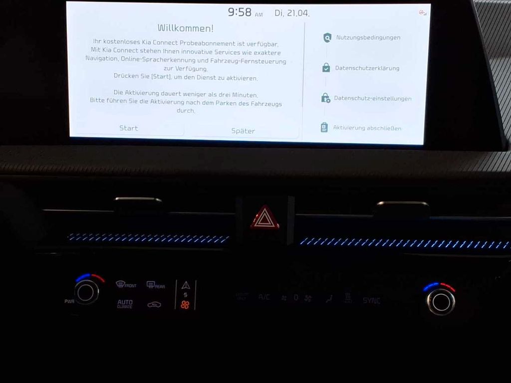 Unter www.autoexpo.de finden Sie zu allen unseren Fahrzeugen TÜV-Zustandsberichte.ABS mit EBD und ESS, Adaptive Geschwindigkeitsregelanlage, Airbag: 2 Frontairbags, Airbag: Mittenairbag vorn, Airbag: Seitenairbags vorn und Vorhangai, Alternator Management System (AMS), Ambiente-Beleuchtung, Autobahnassistent II (HDA), Außenspiegel beheizbar u. el. anklappbar, Außenspiegel in Klavierschwarz, Batterieheizung, Berganfahrhilfe (HAC), Bluetooth-Freisprecheinrichtung, Dachspoiler, Drive Mode Select, Dämmerungssensor, ESC (Elektronisches Stabilitätsprogramm), Frontkollisionswarner m. Fußgängererken., Frontkollisionswarner m. Fußgängererken., Gegenlenkunterstützung, Geschwindigkeitsassistent intelligent, Geschwindigkeitsregelanlage, Navigations, Getriebe: Direktantrieb, Heckklappe elektrisch (inkl. Sensorsteue, ISOFIX-Halterung an äußeren Rücksitzen, Induktive Ladestation für Smartphones, Innenrückspiegel selbstabblendend, Insassenalarm, sensorgesteuert (ROA), Integriertes Digitaldisplay 31.2 cm, Kindersicherung in den hinteren Türen, Klimaautomatik mit Zweizonen-Kontrolle, LED-Rückleuchten, LED-Scheinwerfer-Dual adaptive, LED-Spots an C-Säule, Ladeanschluss: Adapter für V2L-Nutzung, Lendenwirbelstütze Beifahrer, elektrisch, Lenkrad höhen- u. tiefenverstellbar, Lenkrad: Lederlenkrad beheizbar, Lenkrad: Multifunktionslenkrad, Mittelarmlehne hinten, Multikollisionsbremse (Multiple Collisio, Navigation: Kia Kartennavi. (12.3 Zoll), Notruf-Service e-Call, On-Board-Charger (3-Phasen, AC), Online-Dienste UVO CONNECT mit Kia Live, Parkbremse, elektronisch (EPB), Parksensoren vorn und hinten, Polster: Wildlederoptik aus veganem Bezu, Privacy-Verglasung (ab B-Säule), Radiozubehör: USB-Anschluss, Regensensor, Rekuperationswippen am Lenkrad, Rückfahrkamera (Rear View Monitor, RVM), Schnellladesystem (400 V, 800 V, DC), Sicherheitsgurte vorn höhenverstellbar, Sitze: Beifahrersitz höhenverstellbar, Sitze: Fahrersitz höhenverstellbar, Sitze: Lendenwirbelstütze Fahrer, elektr, Sitze: Memory-Funktion Fahrersitz, Fahre, Sitze: Premium-Relaxion Sitz (Beifahrer), Sitze: Premium-Relaxion Sitz (Fahrer), Sitze: Rücksitzlehne im Verhältnis 60:40, Sitze: Sitzheizung vorn und hinten, Sitze: Sitzventilation vorn, Sitze: Ski-Durchreiche, Smart Key und Startknopf, Solarglas-Front u. vordere Seitenfenster, Sportpedale, Spurhalteassistent inkl. Müdigkeitswarne, Stauassistent (Lane Follow Assist, LFA), Totwinkelassistent aktiv, Türgriffe mit automat. Flush-Funktion, USB-Anschluss, Tunnelkonsole vorn (2 Stk, USB-Anschluss, an Sitzlehne der Frontsit, V2L (Vehicle-to-Load): Laden von extern, Wegfahrsperre, Zentralverriegelung, Lackierung: Perleffektlackierung, Audiosystem: Meridian Sound-System (Farbdisplay, 825 Watt, 14 Lautsprecher, Subwoofer), Head-up-Display