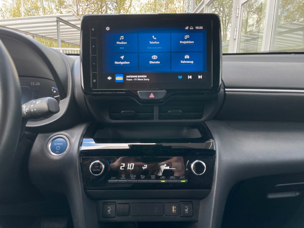 6 Lautsprecher, Airbag Fahrer-/Beifahrerseite, Aktive Kopfstützen vorn, Audiobedienung am Lenkrad, Audiosystem: Multimedia Toyota Touch, Autom. Begleitfunktion der Beleuchtung (Follow me home, FMH), Außenspiegel elektr. verstell- und heizbar, Bremsassistent, Dachantenne, Elektr. Bremskraftverteilung, Fahrassistenz-System: Berganfahrkontrolle (HAC), Fahrassistenz-System: Eco-Anzeige für verbrauchsoptimiertes Fahren, Fahrassistenz-System: Fernlichtassistent (Abblendautomatik Fahrlicht, AHB), Fahrassistenz-System: Müdigkeitserkennungs-Sensor, Fahrassistenz-System: Pre-Collision-System (PCS), Fahrassistenz-System: Sicherheitssystem Toyota Connect mit automatischem Notruf (eCall), Fahrassistenz-System: Spurhalteassistent (LDA), Fahrassistenz-System: Verkehrszeichenerkennung (RSA), Fensterheber elektrisch vorn + hinten, Heckleuchten LED, Heckspoiler, Hybrid 85 kW (Motor 1,5 Ltr. - 68 kW), Innenraumfilter: Staub- und Pollenfilter mit Aktivkohlefilter, Isofix-Kindersitz-System, Karosserie: 5-türig, Kindersicherung elektr. betätigt, Klimaautomatik, Kopf-Airbag-System, Kopfstützen hinten, Lenksäule (Lenkrad) verstellbar, LM-Felgen, Nebelscheinwerfer LED, Parkbremse elektrisch (EPB), Radstand 2560 mm, Reifen-Reparaturkit, Reifendruck-Kontrollsystem, Rücksitz geteilt, Schadstoffarm nach Abgasnorm Euro 6d, Schalt-/Wählhebelgriff Leder, Seitenairbag vorn, Seitenscheiben hinten und Heckscheibe dunkel getönt (Privacy Glass), Service-System: MyT-Connected Services, Sitz vorn links höhenverstellbar, Sitz vorn rechts höhenverstellbar, Sitzbezug / Polsterung: Stoff, Smartphone-Integration x-connect (Apple CarPlay und Android Auto), Steckdose (12V-Anschluß) in Mittelkonsole, Stoßfänger Wagenfarbe, Türgriffe außen Wagenfarbe, Uni-Lackierung, Verglasung hinten abgedunkelt, Warnanlage für Sicherheitsgurte hinten, Warnanlage für Sicherheitsgurte vorn