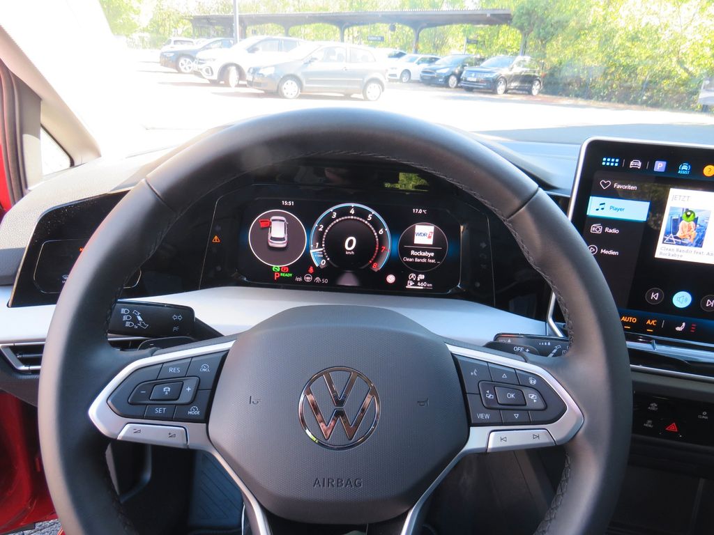 Airbag Fahrer-/Beifahrerseite, Beifahrerairbag abschaltbar, Ambiente-Beleuchtung (10 Farben), App-Connect Wireless (Apple CarPlay, Android Auto), Audiosystem Composition (USB, Bluetooth, Touchscreen-Farbdisplay), Ausstattung Life, Automatische Fahrlichtschaltung mit Leaving Home / Coming-Home-Lichtfunktion, Tagfahrlicht LED, Außenspiegel elektr. verstell-, heiz- und anklappbar mit Spiegelabsenkung rechts, Memory, Außenspiegel mit Umfeldleuchte und Projektionsfunktion, Außenspiegel und Türgriffe außen in Wagenfarbe, Bordwerkzeug, Chromeinfassung Fensterheberschalter / Spiegelverstellung / Ausströmer, Diebstahlsicherung für Räder (Felgenschlösser), Digital Cockpit PRO (Instrumentenanzeige digital), Einparkhilfe vorn und hinten, Elektron. Differentialsperre (XDS), Elektron. Stabilitäts-Programm (ESP) mit Bremskraftverstärker elektro-mechanisch, Fahrassistenz-System: Abbiegebremsfunktion und Ausweichunterstützung, Fahrassistenz-System: Ablenkungs- und Müdigkeitserkennung, Fahrassistenz-System: Berganfahr-Assistent, Fahrassistenz-System: Umfeldbeobachtungssystem (Front assist) mit City-Notbremsfunktion, Fahrassistenz-System: Verkehrszeichenerkennung, Frontscheibe Verbundglas, wärme- und geräuschdämmend, Fußgänger-Schutzmaßnahmen erweitert, Geschwindigkeitsbegrenzer mit vorausschauender Geschw.-Regelung, Heckleuchten LED, Innenausstattung: Dekoreinlagen Nature Cross Brushed, Isofix-Aufnahmen für Kindersitz an Beifahrersitz und Rücksitze außen (inkl. i-Size-Kindersitze), Karosserie: 5-türig, Keyless-Start ohne Safesicherung, Kopfstützen hinten (3-fach), Lautsprecher (6+1), Lendenwirbelstützen vorn, Leseleuchten vorn und hinten LED, Leuchtweitenregelung automatisch, LM-Felgen, Mild-Hybrid 85 kW (Motor 1,5 Ltr. - 85 kW eTSI), Mild-Hybrid-Technologie, Mittelarmlehne vorn höhen-/längsverstellbar, Mobiltelefon Schnittstelle mit kabelloser Ladefunktion, Modellpflege, Multimedia-Schnittstelle 2 x USB (Typ C) vorn und 2 x USB-Ladeanschluß (Typ C) Mittelkonsole hinten (45 W), Nichtraucher-Paket, Notrufsystem, Parkbremse elektrisch mit Auto-Hold-Funktion, Radioempfang digital (DAB+), Reifen-Reparaturkit (Tire Mobility Set), Reifenkontroll-Anzeige, Rücksitzlehne geteilt mit Mittelarmlehne, Schadstoffarm nach Abgasnorm Euro 6e, Scheinwerfer und Tagfahrlicht LED, Seitenairbag vorn mit Center-Airbag, Kopf-Airbag-Einheit vorn und hinten, Servolenkung elektro-mechanisch und geschwindigkeitsabhängig, Sicherheitsgurte hinten außen mit Gurtstraffer, Sitzbezug / Polsterung: Stoff Life, Sitze vorn höhenverstellbar, Sitze: Komfortsitze vorn, Sonnenblenden mit Spiegel (beleuchtet), Start/Stop-Anlage mit Rekuperation, Steckdose 12V im Koffer-/Laderaum, Stoßfänger Wagenfarbe, Türgriffschalen außen beleuchtet, Verbandkasten, Warndreieck und Warnweste(n), Vorbereitung für Alkohol-Wegfahrsperre (Alcolock), Vorbereitung für spätere Freischaltung - Fernlichtassistent Light Assist, Warnanlage für Sicherheitsgurte vorn und hinten, Wärmeschutzverglasung grün getönt (seitlich / hinten)