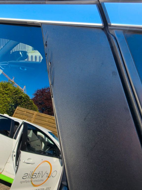 3 kleine Schönheitsfehler hat das Auto: An der B-Säule rechts und C-Säule links löst sich an den Ecken die Folienbeschichtung und an der hinteren Stoßstange ist ein kleiner Kratzer. Ist auf den Fotos auch zu sehen.
