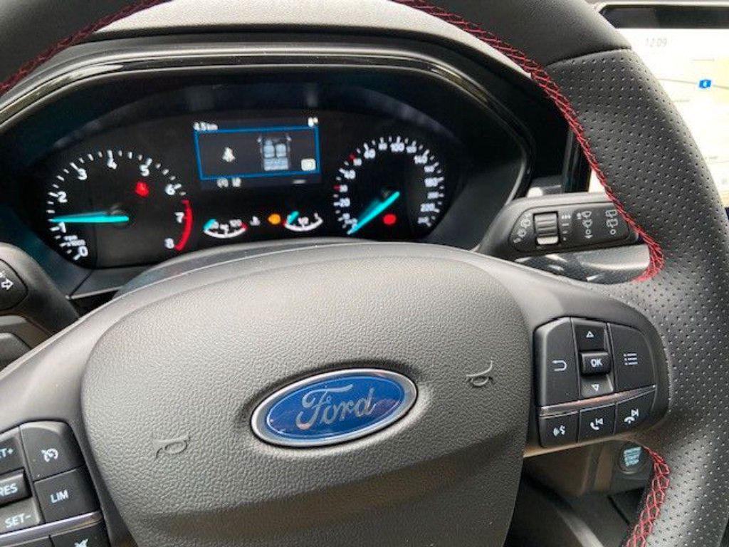 Lenkrad, ST-Line-Design, unten abgeflacht und mit roten Ziernähten