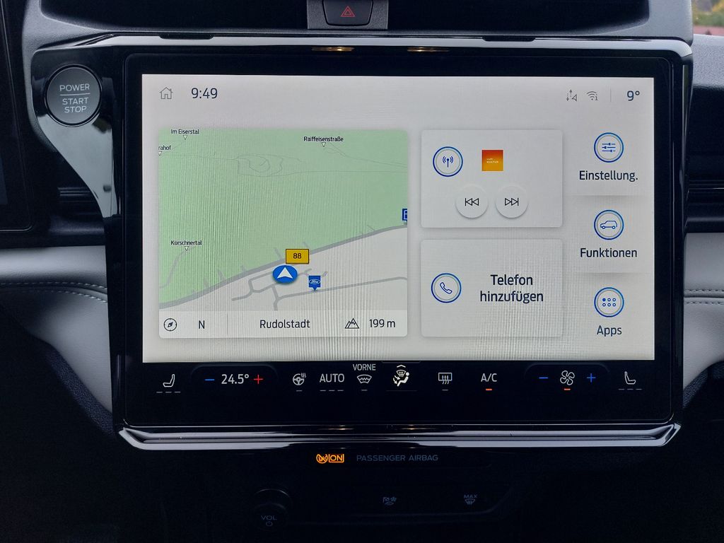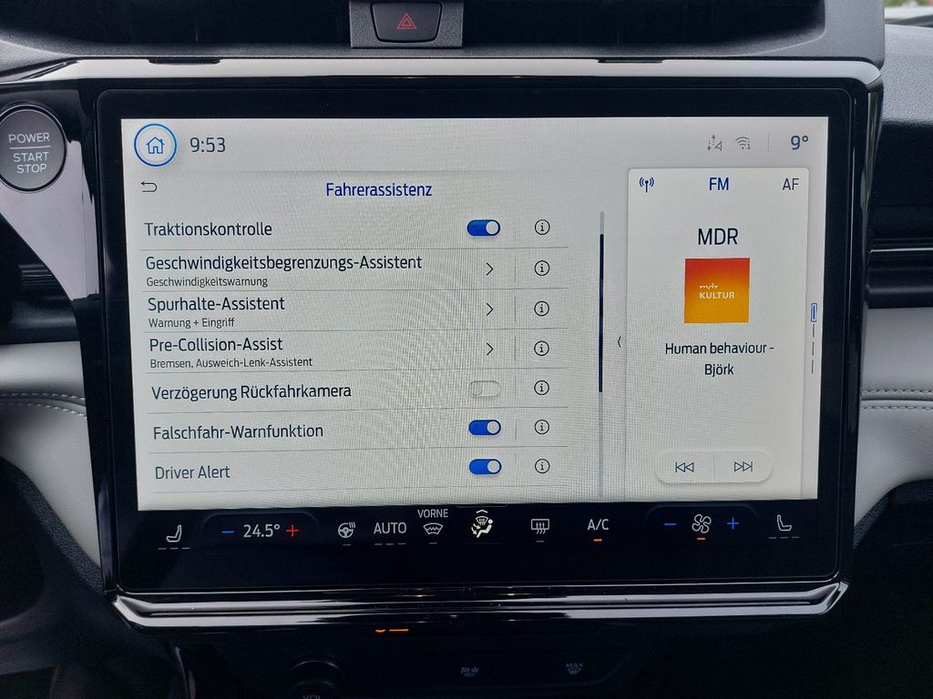 Akustischer Fußgängerschutz (Außensound, AVAS), Ambiente-Beleuchtung (Multicolor-LED), Armaturentafel Oberteil Kunstleder, Audio-Navigationssystem Ford Cloud-Navigationssystem, Außenspiegel elektr. verstell- und heizbar, Außenspiegel Wagenfarbe, Blinkleuchte in Außenspiegel integriert, Dachhimmel Stoff, Eco-Anzeige für verbrauchsoptimiertes Fahren (EcoCoach), Elektromotor 124 kW, Fahrassistenz-System: Falschfahrer-Warnfunktion, Fahrassistenz-System: Pre-Collision-System (Kamera-basiert), Fahrassistenz-System: Spurhalteassistent, Fahrassistenz-System: Verkehrsschildassistent, Farbdisplay (12 Zoll), Fensterheber elektrisch vorn + hinten mit Komfortschließung, Frontstaufach / Frunk (Kofferraum, vorn), Fußmatten vorn, Heckleuchten LED, Heckspoiler, HV-Batterie 43 kWh, Induktionsladeschale für mobile Endgeräte, Innenspiegel mit Abblendautomatik, Intelligent Protection System (IPS), Intelligenter Geschwindigkeits-Begrenzer, Karosserie: 5-türig, Klimaautomatik, Kopf-Schulter-Airbag hinten, Kopf-Schulter-Airbag vorn, Ladekabel mit Typ 2-Stecker (Mode 3), Lendenwirbelstütze Sitz vorn links, Lendenwirbelstütze Sitz vorn rechts, Lenkrad (Kunstleder), LM-Felgen, Metallic-Lackierung, On-Board-Modem, Parkbremse elektrisch, Parkpilotsystem hinten, Radstand Standard, Reifen-Reparaturkit, Reifendruck-Kontrollsystem, Rückfahrkamera, Schalthebel am Lenkrad, Scheinwerfer LED, Sitze vorn höhenverstellbar, Stoßfänger Wagenfarbe, Verglasung hinten abgedunkelt (Privacy Glass), WLAN-Hotspot