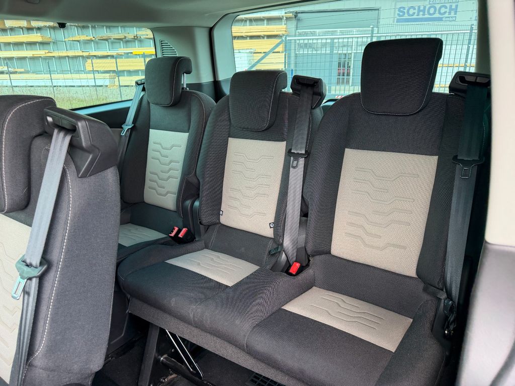 2. Batterie, Ablage im Dachhimmel Fahrerhaus, Airbag Beifahrerseite, Airbag Fahrerseite, Ambiente, Antriebs-Schlupfregelung (ASR), Außenspiegel in Wagenfarbe, Blinkleuchte in Außenspiegel integriert, Bodenbelag: Teppich im Lade-/Fahrgastraum, Bordcomputer, Dachverkleidung Himmel im Fahrgastraum, Elektr. Bremskraftverteilung (EBD), Fahrassistenz-System: Berganfahr-Assistent, Fahrassistenz-System: Notbrems-Assistent, Fenster im Lade-/FG-Raum: - ausstellbar, Fenster im Lade-/FG-Raum: - feststehend, 2.Reihe links, Fenster im Lade-/FG-Raum: - feststehend, 2.Reihe rechts, Haltegriff B-Säule, Heckklappe mit Verglasung, Heckscheibenwischer, Innenraumfilter: Pollenfilter, Karosserie/Aufbau: Kombi Standard, Karosserievariante: Normaldach, Lenksäule (Lenkrad) höhen-/längsverstellbar, LM-Felgen, Motor 2,0 Ltr. - 96 kW TDCi KAT, Parkpilotsystem vorn und hinten, Radstand 2933 mm, Reserverad in Fahrbereifung, Schadstoffarm nach Abgasnorm Euro 6, Schalt-/Wählhebelgriff Leder, Schiebetür Lade-/Fahrgastraum links, Schiebetür Lade-/Fahrgastraum rechts, Schmutzfänger vorn, Schmutzfänger vorn und hinten, Seitenschutzleisten in Wagenfarbe, Sitzbezug / Polsterung: Stoff, Sitze im Lade-/FG-Raum: 1.Reihe, 2-fach kippbar, Sitze im Lade-/FG-Raum: 2.Reihe, 2-fach kippbar, Sitze im Lade-/FG-Raum: 2.Reihe, Doppelsitz, Sitze im Lade-/FG-Raum: 3.Reihe, Einzelsitz rechts, Doppelsitz links, Sonnenblende links mit Spiegel, Sonnenblende rechts mit Spiegel, Sonnenschutzrollo an Seitenscheiben Fahrgastraum, Start/Stop-Anlage, Steckdose 12V im Lade-/Fahrgastraum, Stoßfänger in Wagenfarbe, Titanium, Türgriffe außen und Heckklappengriff in Wagenfarbe, Verglasung hinten abgedunkelt (Privacy Glass), Verkleidung im Lade-/FG-Raum: Kunststoff, Zusatzheizung elektrisch, Zweiter Schlüssel mit Fernbedienung klappbar