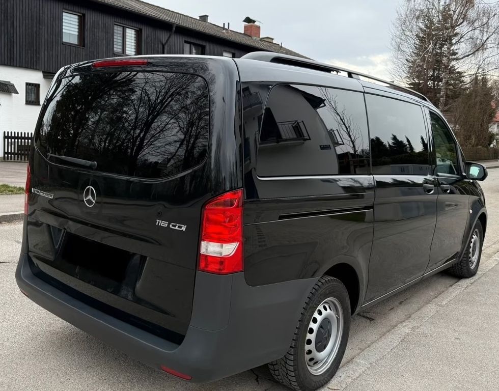 Der Vito verfügt über eine umfangreiche Ausstattung und eignet sich ideal als Familienfahrzeug oder für längere Fahrten mit viel Platz und Komfort.