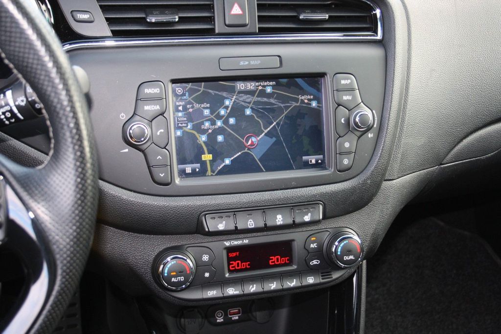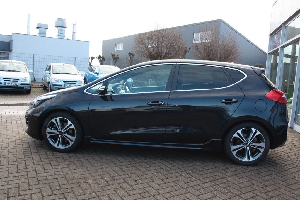 Dieser gepflegte KIA Ceed aus dem Jahr 2016 präsentiert sich in elegantem Schwarz-Metallic und überzeugt durch seine umfangreiche Ausstattung. Der sparsame 3-Zylinder Benzinmotor mit 998 ccm Hubraum leistet 120 PS und erfüllt die Euro 6 Abgasnorm. Das Fahrzeug verfügt über ein manuelles Schaltgetriebe und Frontantrieb. Mit lückenlosem Scheckheft, frischer HU/AU und neuem Service bietet dieser Kompaktwagen höchste Zuverlässigkeit.Die Ausstattung lässt kaum Wünsche offen: Automatische Klimaanlage, Navigationssystem, Touchscreen, Bluetooth-Freisprecheinrichtung und Musikstreaming sorgen für Komfort und Konnektivität. Sicherheit wird durch Front-, Seiten- und weitere Airbags, ESP, ABS, Berganfahrhilfe und Reifendruckkontrolle gewährleistet. Parksensoren hinten und Rückfahrkamera erleichtern das Einparken. Das Interieur in Schwarz mit Stoffbezügen, beheizbaren Sitzen und Lenkradheizung bietet Komfort für alle fünf Passagiere.