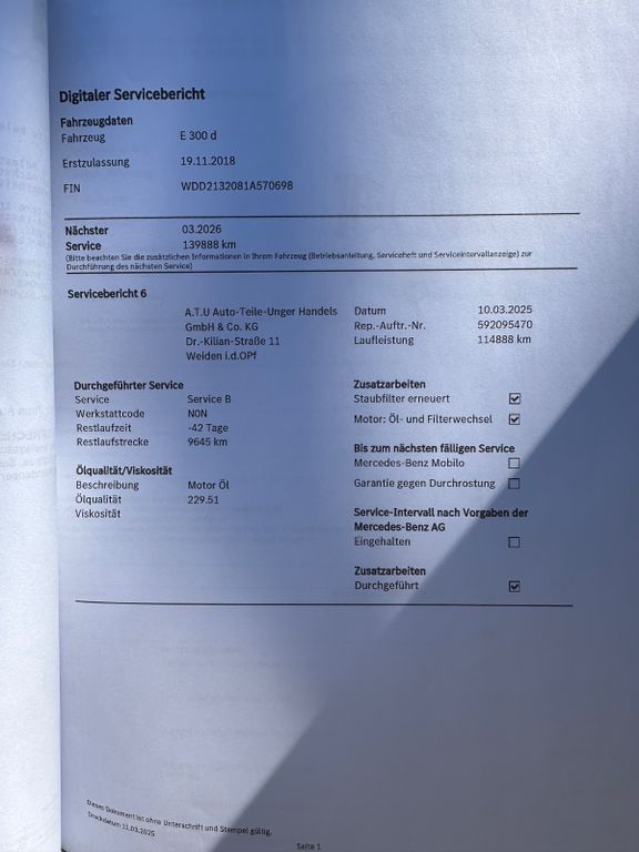 Letzter Service bei 114.888 Km im 03.2026