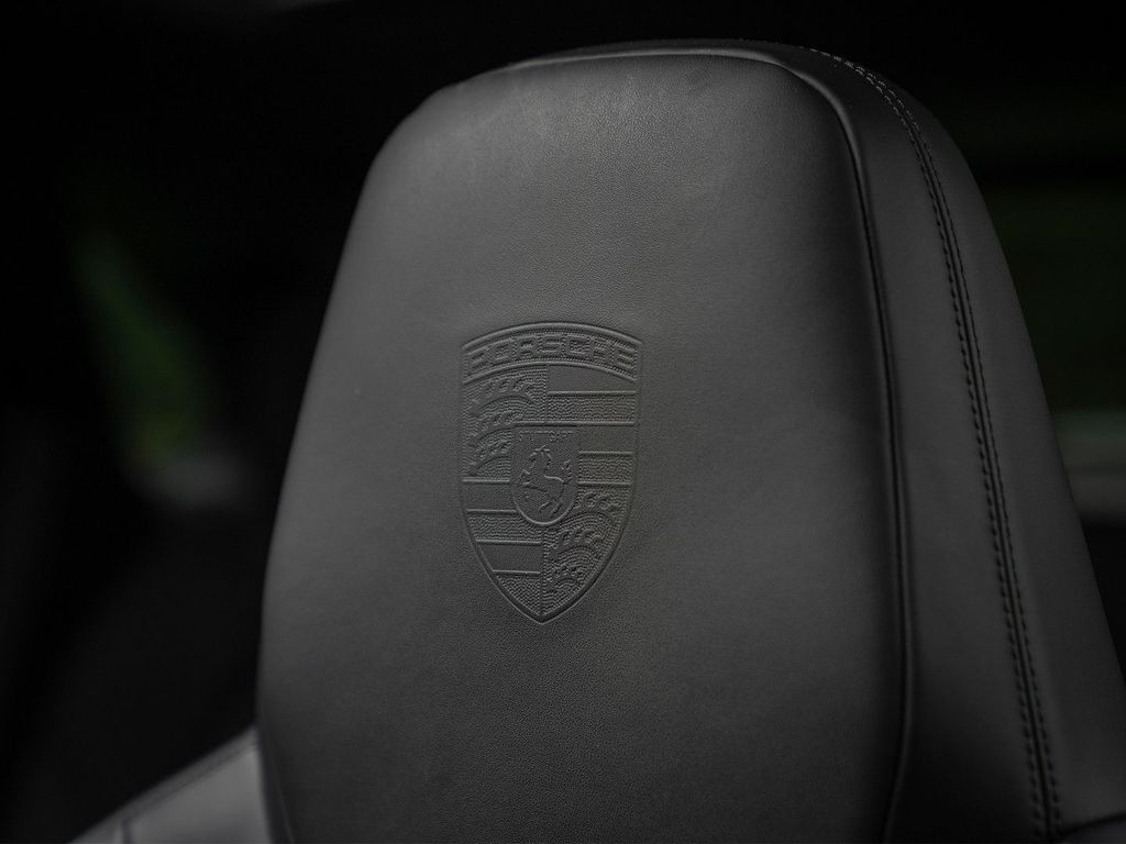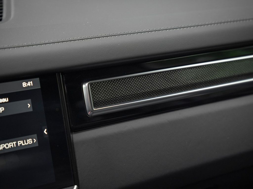 Dieser Porsche Cayenne Turbo ist ein echter Performance-SUV. Daher ist die Entscheidung für die schwarze Lederausstattung mit Carbon-Interieurpaket absolut nachvollziehbar. Der Innenraum wirkt nicht nur sportlich, sondern auch äußerst luxuriös: Man beachte beispielsweise den Alcantara-Dachhimmel inklusive der Säulen. Obwohl nahezu alle Details dunkel gehalten sind – von den Ziernähten über die Porsche-Embleme in den Kopfstützen bis hin zum Hintergrund der Sport Chrono Uhr in der Mitte des Armaturenbretts – wirkt der Innenraum keineswegs düster oder gar ungemütlich. Dies ist unter anderem dem großen Panorama-Glasdach und der stimmungsvollen Ambientebeleuchtung zu verdanken. Und nicht zu vergessen: Dieser Sportwagen bietet fünf Sitze … und jede Menge Platz im Innenraum!