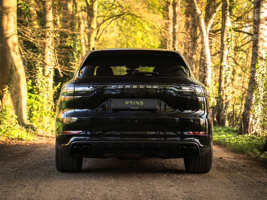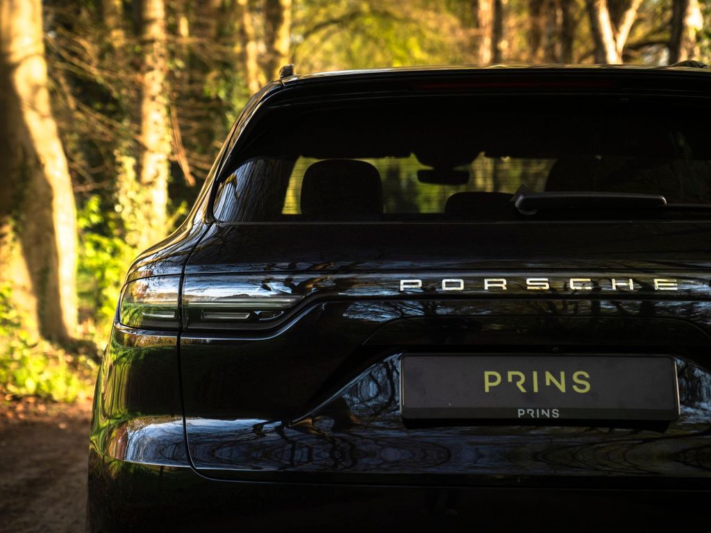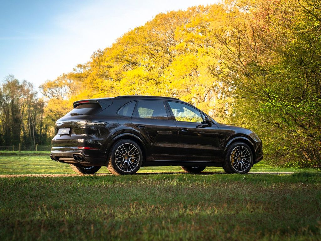 Bei der Einführung des Cayenne fragte sich die Welt offen, ob Sportwagenhersteller Porsche den Anschluss verloren hatte. Doch dieselbe Welt verliebte sich Hals über Kopf in die Möglichkeit, jeden Tag ein leistungsstarkes Auto zu fahren, kombiniert mit dem Komfort eines vollwertigen Familienwagens. Einige Generationen später lässt sich sagen, dass der Porsche Cayenne ein durchschlagender Erfolg ist. Die Weiterentwicklung des SUV ist deutlich sichtbar, ebenso wie die Einflüsse des 911, an denen sich der Cayenne traditionell orientiert. Konkret sind die charakteristischen LED-Matrix-Scheinwerfer mit Porsche Dynamic Light System Plus ausgestattet, das unter allen Bedingungen für einen optimalen, kristallklaren Lichtstrahl sorgt. Das System blendet andere Verkehrsteilnehmer nicht. Auch farblich blieb der Vorgänger zurückhaltend: Tiefschwarz Metallic kombiniert mit schwarz lackierten Exterieurdetails wie Fensterrahmen, Dachreling und Kühlergrill. Die Sportendrohre der Abgasanlage sind ebenfalls schwarz. Zusätzlich tragen Privacy-Verglasung und die abgedunkelten LED-Rückleuchten zum geheimnisvollen Erscheinungsbild des Cayenne Turbo bei. Der Porsche rollt auf 21-Zoll-Cayenne-Exclusive-Design-Rädern mit dunkler Einlage, hinter denen gelbe Bremssättel die beeindruckende Bremsleistung der Keramikbremsen unterstreichen.
