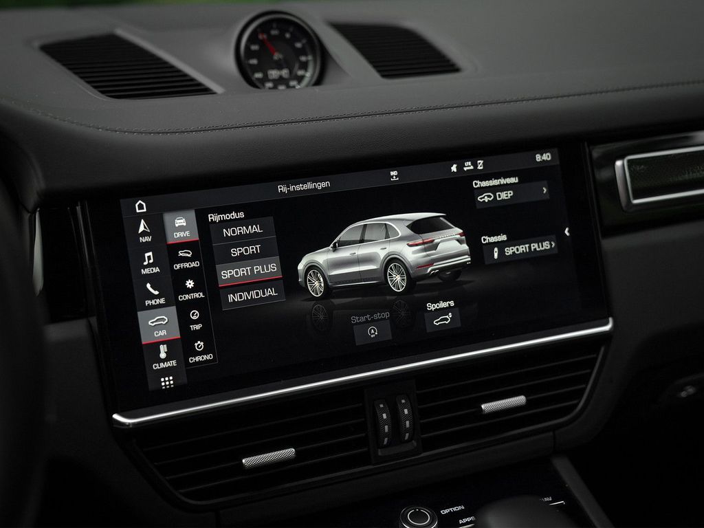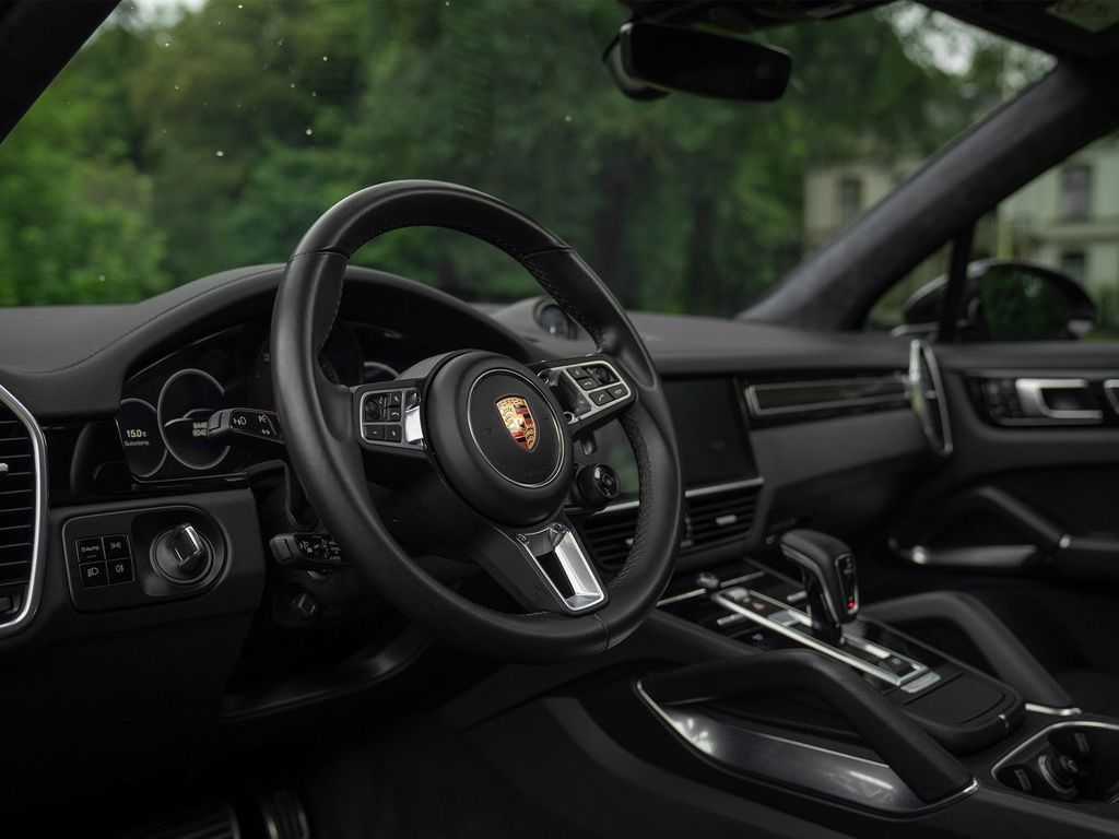 Zahlreiche digitale Bildschirme und Assistenzsysteme bestätigen, dass unser Porsche auf dem neuesten Stand der Technik ist und über eine umfassende Ausstattung verfügt. Dieser hier setzt dem Ganzen noch eins drauf: Der große Infotainment-Bildschirm zeigt beispielsweise die Funktion der 3D-Surround-View-Kamera gestochen scharf an. Darüber lassen sich auch Funktionen wie Bose Surround Sound, Apple CarPlay und Porsche Dynamic Chassis Control bedienen. Das elektrische Panorama-Schiebedach und die adaptiven Sportsitze, inklusive Komfort-Memory-Paket, bieten eigene Bedienelemente für eine (gespeicherte) Position, die der Ausstattung perfekt entspricht. Weitere Komfortmerkmale sind die adaptive Geschwindigkeitsregelung mit Spurhalteassistent und Stauassistent, der Spurwechselassistent, LED-Matrix-Scheinwerfer, PDLS+ und HomeLink. Dank Soft-Close-Funktion lassen sich die Türen beim Ein- und Aussteigen fast lässig schließen. Doch dieser Cayenne Turbo macht wirklich Eindruck. Das Sport Chrono Paket und der Klang der Abgasanlage mit Sportendrohren erklären, warum…