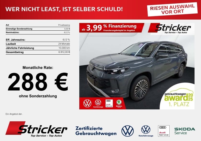 1. Hand; Scheckheftgepflegt; 3D-LED-Rückleuchten mit dynamischer Blinkleuchte; "IQ.LIGHT" - HD-Matrix-Scheinwerfer; Navigationssystem; Automatische Distanzregelung ACC "stop & go"; Berganfahr- und Bergabfahrassistent; Mit Verkehrszeichenerkennung; Dynamischer Fernlichtassistent "Dynamic Light Assist"; Umgebungsansicht "Area View" inkl. Rückfahrkamera "Rear View"; Fahrassistent "Travel Assist", Spurhalteassistent "Lane Assist" und "Emergency Assist"; Spurwechselassistent "Side Assist", Ausparkassistent und Ausstiegswarnung; Ablenkungs- und Müdigkeitserkennung; Vordersitze beheizbar, Sitzfläche und -lehne getrennt einstellbar; Parkassistent "Park Assist Plus" inkl. Einparkhilfe; Anhängevorrichtung anklappbar, mit elektrischer Entriegelung; inkl. Anhängerrangierassistent Trailer Assist; Multifunktionslenkrad in Leder, beheizbar, mit Schaltwippen; 2 USB-C-Schnittstellen vorn, 2 USB-C-Ladebuchsen an der Mittelkonsolehinten; Ladeleistung bis zu 45 W; Klimaanlage "Air Care Climatronic" mit Aktiv-Kombifilter, Bedienelementen hinten und 3-Zonen-Temperaturregelung; Telefonschnittstelle "Comfort" mit induktiver Ladefunktion für 2 Smartphones, Ladeleistung bis zu 15 W; Lendenwirbelstützen vorn pneumatisch einstellbar; Fahrlichtschaltung automatisch, mit LED-Tagfahrlicht sowie "Coming home"- und "Leaving home"-Funktion; Digital Cockpit Pro, mehrfarbig, verschiedene Info-Profile wählbar; App-Connect Wireless für Apple CarPlay und Android Auto; Außenspiegel elektrisch einstell-, anklapp- und beheizbar; auf Fahrerseite abblendend, Memory-Funktion; Adaptive Fahrwerksregelung DCC Pro inkl.Fahrprofilauswahl; Ambientebeleuchtung 10-farbig, in der Instrumententafel sowie in den Türen; Volkswagen Logo vorn und hinten, Leiste zwischen den Scheinwerfern/Rückleuchtenbeleuchtet, mit Animation; Details zur Finanzierung unten im Inserat! Sie möchten eine Anzahlung leisten, Ihr altes Fahrzeug eintauschen oder haben eine abweichende jährliche Fahrleistung? Alles kein Problem, wir machen Ihnen gerne ein Angebot!