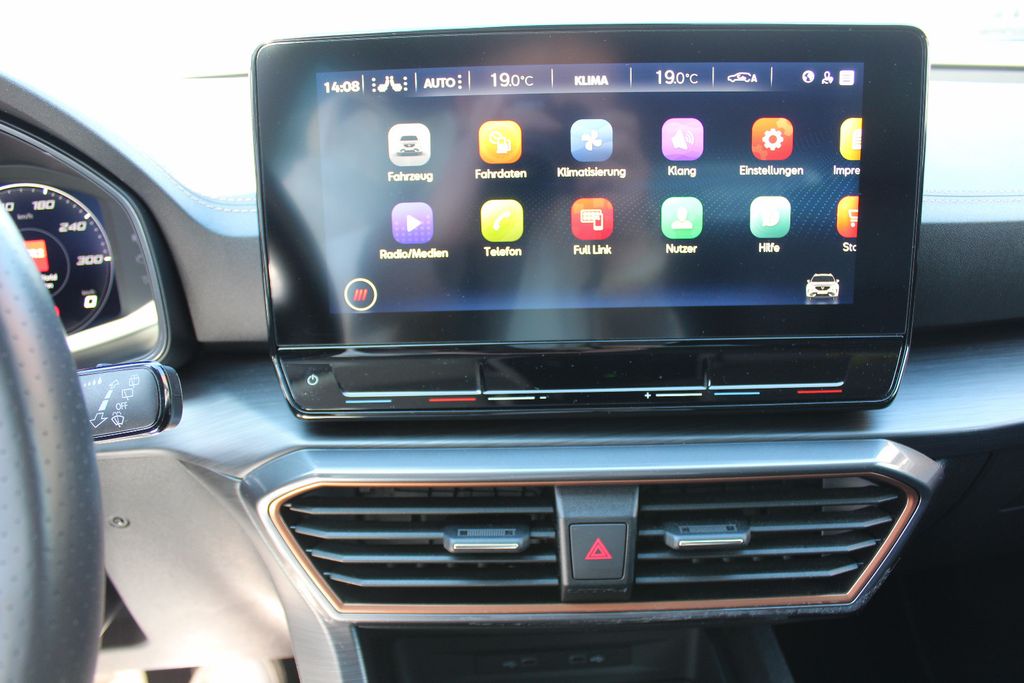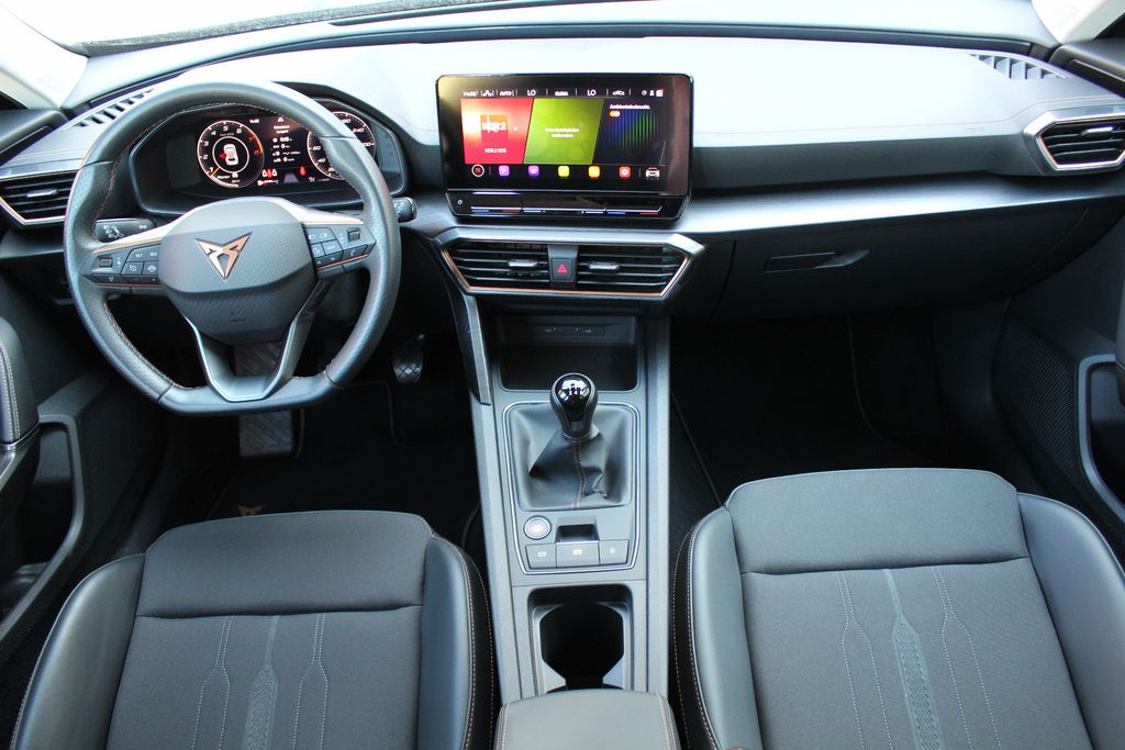 7 Lautsprecher, Airbag Beifahrerseite abschaltbar, Airbag Fahrer-/Beifahrerseite, Antriebs-Schlupfregelung (ASR), Außenspiegel elektr. verstell-, heiz- und anklappbar mit Spiegelabsenkung und Welcome Light, Blinkleuchten LED in Außenspiegel integriert, Bluetooth-Schnittstelle mit Freisprecheinrichtung integriert, Dachreling schwarz, hochglänzend, Doppeltonhorn, Einstiegsleisten (Aluminium) vorn, beleuchtet, Elektron. Differentialsperre (XDS), Fahrassistenz-System: Fahrprofilauswahl (CUPRA Drive Profile), Fensterheber elektrisch vorn + hinten mit Komfortschaltung, Fensterzierleisten schwarz hochglänzend, Gepäckraumabdeckung / Rollo, Heckleuchten Voll-LED mit dynamischem Lichtband (Infinite Light), Isofix-Aufnahmen für Kindersitz an Rücksitz, Karosserie: 5-türig, Klimaanlage Climatronic 3-Zonen, Kombiinstrument digital (virtual cockpit), Kopf-Airbag-System, Laderaumboden variabel und herausnehmbar, Lendenwirbelstütze Sitz vorn links, verstellbar, Lendenwirbelstütze Sitz vorn rechts, verstellbar, Licht- und Sicht-Paket, LM-Felgen, Media-System Plus, Mittelarmlehne hinten, Mittelkonsole vorn mit Mittelarmlehne, Becherhalter, Ablagebox und Luftausströmer hinten, Motor 1,5 Ltr. - 110 kW 16V TSI ACT, Notrufsystem, Otto-Partikelfilter (OPF), Parkbremse elektrisch, Radioempfang digital (DAB+), Radstand 2679 mm, Rücksitzlehne geteilt/klappbar (1/3-2/3), Rücksitzlehnen umklappbar mit Fernentriegelung im Kofferraum, Schadstoffarm nach Abgasnorm Euro 6d, Seitenairbag, Seitenairbag vorn mitte (Central Airbag), Seitenscheiben hinten und Heckscheibe abgedunkelt, Sitz vorn links höhenverstellbar, Sitz vorn rechts höhenverstellbar, Sitzbezug / Polsterung: Stoff, Sonnenblende links mit Spiegel (beleuchtet), Sonnenblende rechts mit Spiegel (beleuchtet), Sportsitze vorn, Start/Stop-Anlage, Steckdose (12V-Anschluß) vorn, Steckdose 230V im Gepäckraum, USB-Ladeanschlüsse (2-fach, Typ C) für 2.Sitzreihe, USB-Schnittstelle vorn (2-fach, Typ C), Verzurrösen Koffer-/Laderaum, Warnanlage für Sicherheitsgurt-System, Wärmeschutzverglasung, Nebelscheinwerfer, Seitenscheiben hinten und Heckscheibe abgedunkelt