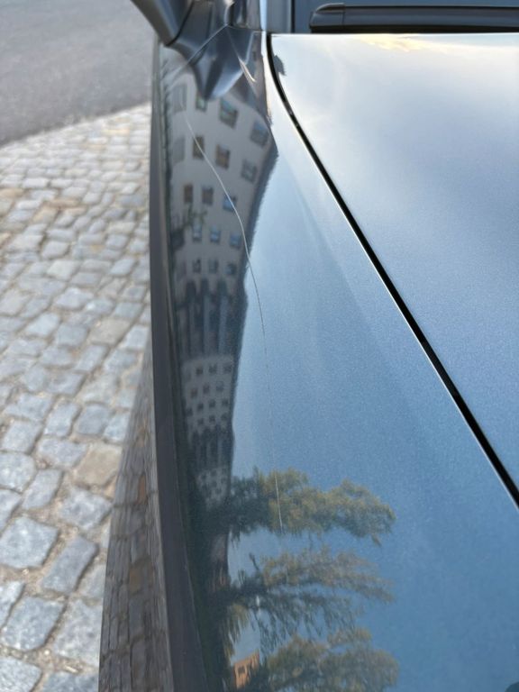 Außerdem befindet sich ein Kratzer an Kotflügel und an der Tür (Vandalismus)