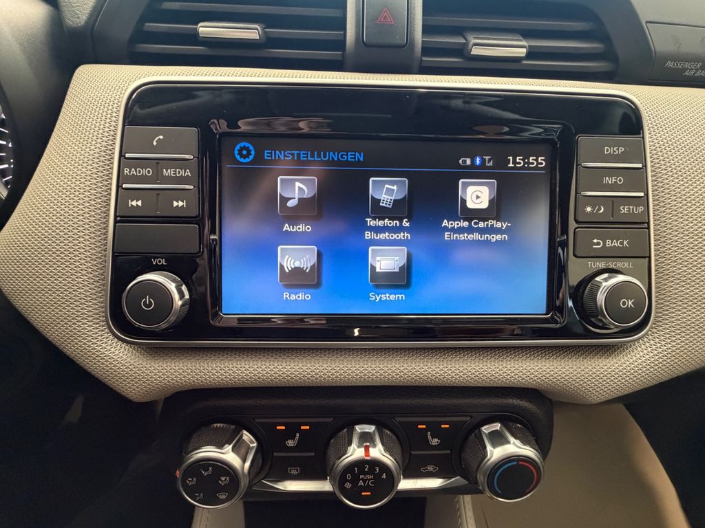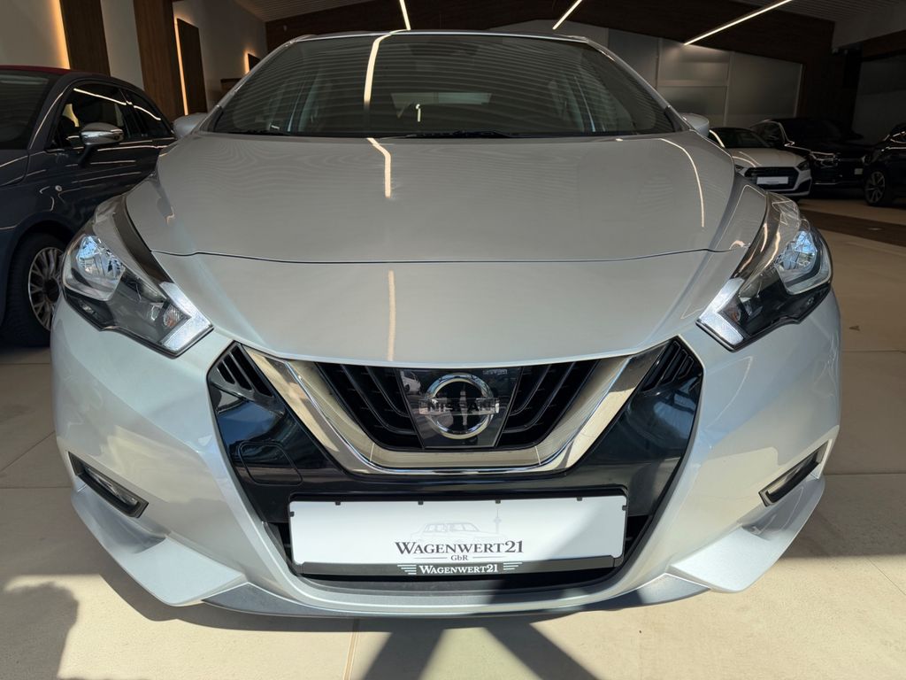 3. Bremsleuchte, 4 Lautsprecher, Airbag Beifahrerseite abschaltbar, Airbag Fahrer-/Beifahrerseite und Seitenairbag vorn, Audio-Paket, Audiobedienung am Lenkrad, Automatische Fahrlichtschaltung, AUX-IN-Anschluss (AUX-IN), Außenspiegel anklappbar, Außenspiegel elektr. verstellbar, Außentemperaturanzeige, Blinkleuchte in Außenspiegel integriert, Bluetooth-Schnittstelle, Bordcomputer, Bremsassistent (Nissan Brake-Assist), Dachantenne, Dachspoiler, Drehzahlmesser, Fahrassistenz-System: Berganfahr-Assistent, Fahrassistenz-System: Notbrems-Assistent, Frontscheibe Verbundglas, Gepäckraumabdeckung / Rollo, Geschwindigkeits-Begrenzeranlage, Getränkehalter hinten, Getränkehalter vorn, Gurtstraffer, Heckscheibe heizbar, Heckscheibenwischer, Innenraumfilter: Pollenfilter, Isofix-Aufnahmen für Kindersitz, Karosserie: 5-türig, Kopf-Airbag-System, Kopfstützen vorn und hinten verstellbar, Lenkrad (Sport), Lenksäule (Lenkrad) höhen-/längsverstellbar, Leseleuchte vorn, Motor 0,9 Ltr. - 66 kW KAT, Nebelschlussleuchte, Reifen-Reparaturset, Reifendruck-Kontrollsystem, Rücksitzbank umklappbar, Schadstoffarm nach Abgasnorm Euro 6, Scheibenwischer mit Intervallschaltung, Sitz vorn links höhenverstellbar, Sitzbezug / Polsterung: Stoff, Sonnenblenden mit Spiegel, Steckdose (12V-Anschluß), TFT-Farbdisplay (5,0 Zoll), Touchscreen-Farbdisplay (7,0 Zoll) in Mittelkonsole, Türgriffe innen verchromt, USB-Schnittstelle