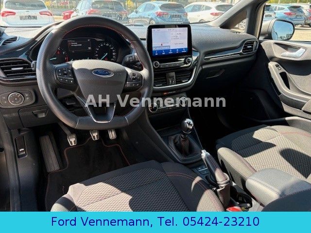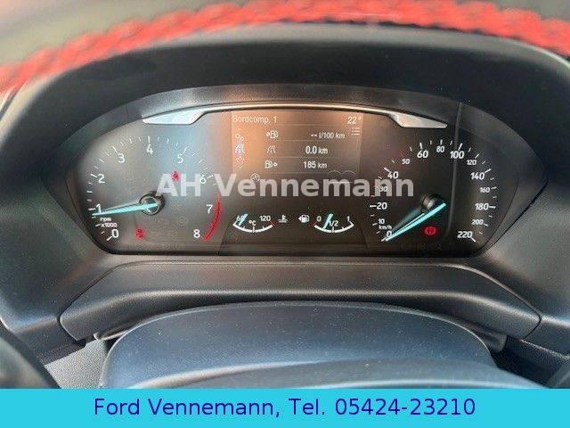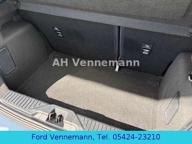 Airbag Beifahrerseite abschaltbar, Ambiente-Beleuchtung vorn (LED), Audio-Navigationssystem Ford SD (mit Ford SYNC), Außenspiegel elektr. verstell- und heizbar, Außenspiegel Wagenfarbe, Blinkleuchte in Außenspiegel integriert, Body-Styling-Paket, Bord-/Verbrauchscomputer, Brillenfach in Dachhimmel / Dachkonsole integriert, Dachhimmel Stoff, dunkel, Dachspoiler Wagenfarbe, Einstiegschienen mit Modell-Schriftzug, Elektr. Bremskraftverteilung (EBD), Energierückgewinnung (Smart Regenerative Charging), Fahrassistenz-System: Auffahrwarnsystem, Fahrassistenz-System: Berganfahr-Assistent (Hill-Holder), Fahrassistenz-System: Notbrems-Assistent, Fahrassistenz-System: Pre-Collision-System, Fensterheber elektrisch vorn + hinten mit Komfortschließung, Fußmatten Velours - vorn, Getriebe 6-Gang - Typ: 6MX65, Handbremshebelgriff Leder, Innenraumfilter: Staub- und Pollenfilter, Intelligent Protection System (IPS), Isofix-Aufnahmen für Kindersitz, Karosserie: 5-türig, Klimaautomatik, Komfort-Paket, Kopfstützen hinten mechan. verstellbar (3 Stück), Kühlergrill im Sport-Design, Lenksäule (Lenkrad) höhen-/längsverstellbar, Leseleuchte vorn, LM-Felgen, Mild-Hybrid 92 kW (Motor 1,0 Ltr. - 92 kW EcoBoost), My Key (2. Fahrzeugschlüssel programmierbar), Pedale Aluminium, Reifen-Reparaturkit, Reifendruck-Kontrollsystem, Rücksitz geteilt, Rücksitzlehne klappbar, Schadstoffarm nach Abgasnorm Euro 6, Scheinwerfer mit Ausschaltverzögerung, Scheinwerfer-Assistent mit Tag-/Nachtsensor, Sitz vorn links höhenverstellbar, Sonnenblende links mit Spiegel, Sonnenblende rechts mit Spiegel, Sound-System Bang & Olufsen Play, Sport-Fahrwerk, Sportsitze vorn, Start/Stop-Anlage, Technik-Paket 1, Technik-Paket 2, Türgriffe außen Wagenfarbe, Verglasung getönt, Warnanlage für Sicherheitsgurte hinten