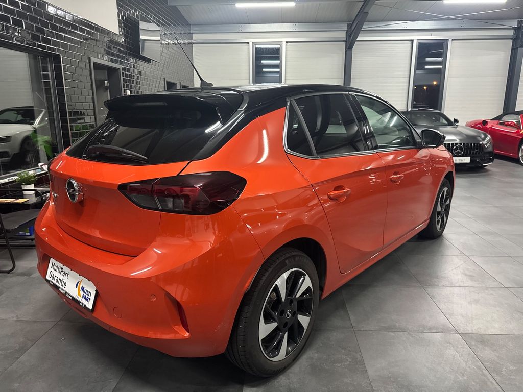 6 Lautsprecher, Airbag Fahrer-/Beifahrerseite, Akustischer Fußgängerschutz (Außensound), Audiosystem Multimedia, B-Säulen schwarz Hochglanz (außen), Bordcomputer, Bremsassistent, Elektrische Schnellheizung (Quickheat), Elektrofahrzeug, Elektromotor 100 kW (cont. 57 kW), Elektron. Stabilitäts-Programm Plus (ESP), Fahrassistenz-System: Berganfahr-Assistent (HSA, Hill Start Assist), Fahrassistenz-System: Müdigkeitserkennungs-Sensor, Fahrassistenz-System: Spurhalteassistent, Fahrassistenz-System: Verkehrszeichenerkennung, Farbdisplay (7 Zoll), Fensterheber elektrisch vorn + hinten, Fensterheber vorn elektr. mit Einklemmschutz, Fernbedienung zur Aktivierung der Heizung/Klimaanlage, Feststellbremse elektrisch, Gepäckraumbeleuchtung (LED), Heckscheibenwischer, Innenausstattung: Dekorleisten Silber / Schwarz (Grau), Isofix-Aufnahmen für Kindersitz an Beifahrersitz, Isofix-Aufnahmen für Kindersitz an Rücksitz, Karosserie: 5-türig, Klimaautomatik, Kopf-Airbag-System, Ladekabel mit Schukostecker (Mode 2), Lenkrad (Sport/Leder - 3-Speichen, unten abgeflacht) mit Multifunktion, Lenksäule (Lenkrad) verstellbar, Leseleuchten vorn (2), LM-Felgen, Mittelarmlehne vorn mit Ablagefach, Motor Starterknopf, Nebelschlussleuchte, Opel Connect, Reifen-Reparaturkit, Rücksitzbank geteilt/klappbar (60:40), Scheinwerfer LED, Seitenairbag vorn, Sicht-Paket, Sitzbezug / Polsterung: Stoff / Ledernachbildung, Stoßfänger Wagenfarbe, Türgriffe außen Wagenfarbe, Türgriffe innen verchromt, Warnanlage für Sicherheitsgurt, Beifahrerseite, Warnanlage für Sicherheitsgurt, Fahrerseite, Warnanlage für Sicherheitsgurte hinten, Wärmepumpe zur Reichweitenoptimierung