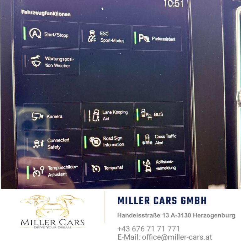 Airbag Beifahrerseite, Airbag Beifahrerseite abschaltbar, Airbag Fahrerseite, Ambiente-Beleuchtung erweitert, Anhänger-Stabilisierungs-Programm (TSA) Vorbereitung, Applikationen an den Seitenfenstern schwarz, hochglänzend, Audiobedienung am Lenkrad, Außen-/Innenspiegel mit Abblendautomatik, Außenspiegel elektr. anklappbar, Außenspiegel elektr. verstell- und heizbar, beide, Außenspiegel schwarz, hochglänzend, Außenspiegel Weitwinkel, Beinauflage manuell einstellbar, Sitze vorn, Betätigung Heckklappe/-Deckel automatisch, Blinkleuchten LED in Außenspiegel integriert, Business-Paket, Dach in Kontrastfarbe, Dachhimmel Anthrazit, Dachreling schwarz, hochglänzend, Digitale Instrumentierung 12,3"-Display, Durchladeeinrichtung (Mittelarmlehne hinten), Einstiegsleisten mit Aluminiumeinlage, Elektron. Differentialsperre Corner Traction Control (CTC) mit Torque Vectoring, Erste Hilfe-Kasten / Verbandkasten, Fahrassistenz-System: aktiver Spurhalteassistent (LKA), Fahrassistenz-System: Bergabfahrkontrolle (HDC), Fahrassistenz-System: Berganfahr-Assistent (HSA), Fahrassistenz-System: City-Safety-System (Autonomer Notbrems-Assistent), Fahrassistenz-System: Connected Safety, Fahrassistenz-System: Fahrprofilauswahl (Drive Mode), Fahrassistenz-System: Fernlichtassistent, Fahrassistenz-System: Multikollisionsbremse (Multi Collision Brake), Fahrassistenz-System: Müdigkeitserkennungs-Sensor, Fahrassistenz-System: Run-off Road Protection, Fahrassistenz-System: Spurverlassenswarnung (Oncoming Lane Mitigation), Fahrassistenz-System: Straßenrand-Erkennung (Road Edge Detection), Fahrassistenz-System: Verkehrszeichenerkennung (Road Sign Information, RSI), Fensterheber elektrisch vorn + hinten, Geschwindigkeits-Begrenzeranlage, Getriebe Automatik - Geartronic (8-Stufen), Getränkehalter in Mittelkonsole, Gurtstraffer, Heckscheibe heizbar, Hotspot (WLAN-Router integriert), Innenausstattung: Dekoreinlagen Aluminium Cutting Edge, Isofix-Aufnahmen für Kindersitz, Karosserie: 5-türig, Klimaautomatik 2-Zonen, Knieairbag Fahrerseite, Kopf-Airbag-System, Ladekantenschutz (Edelstahl), Lendenwirbelstützen vorn, elektr. verstellbar, Lenkrad (Sport/Leder perforiert), Lenkrad mit Multifunktion, Lenksäule (Lenkrad) höhen-/längsverstellbar, Make-up-Spiegel beleuchtet, Mittelarmlehne hinten mit Getränkehalter, Motor 2,0 Ltr. - 110 kW Diesel KAT (1969 ccm), Nebelscheinwerfer LED, Nebelschlussleuchte, Parkbremse elektrisch, Radioempfang digital (DAB), Radstand 2702 mm, Red Key, Reifendruck-Kontrollsystem, Rücksitz geteilt, Rücksitzlehnen klappbar, Schadstoffarm nach Abgasnorm Euro 6d-TEMP, Schalt-/Wählhebelgriff Leder, Scheinwerfer LED, Schleudertrauma-Schutzsystem (WHIPS), Seitenairbag vorn, Sicherheitsgurte vorn höhenverstellbar, Sitz vorn links höhenverstellbar, Sitz vorn links neigungsverstellbar, Sitz vorn rechts höhenverstellbar, Sitzbezug / Polsterung: Nubuk Textil / Leder Nappa, Sport-Fahrwerk, Sport-Pedalerie, Sprachsteuerungs-System, Start/Stop-Anlage, Steckdose (12V-Anschluß) im Koffer-/Laderaum, Steckdose (12V-Anschluß) in Mittelkonsole vorn, Taschenhaken im Gepäckraum, Textilfussmatten, Verglasung getönt, Volvo ON CALL, Warnanlage für Sicherheitsgurte vorn und hinten