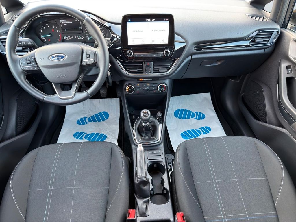 Airbag Beifahrerseite abschaltbar, Audiosystem: Radio mit Ford SYNC (AppLink und Touchscreen), Außenspiegel elektr. verstell- und heizbar, Außenspiegel Wagenfarbe, Blinkleuchte in Außenspiegel integriert, Bord-/Verbrauchscomputer, Dachspoiler Wagenfarbe, Easy-Driver-Paket, Elektr. Bremskraftverteilung (EBD), Energierückgewinnung (Smart Regenerative Charging), Fahrassistenz-System: Berganfahr-Assistent (Hill-Holder), Fahrassistenz-System: Notbrems-Assistent, Fahrassistenz-System: Spurhalteassistent, Fensterheber elektrisch vorn + hinten mit Komfortschließung, Fußmatten Velours - vorn, Getriebe 6-Gang - Typ: 6MX65, Innenraumfilter: Staub- und Pollenfilter, Intelligent Protection System (IPS), Isofix-Aufnahmen für Kindersitz, Karosserie: 5-türig, Kopfstützen hinten mechan. verstellbar (3 Stück), Kühlergrill schwarz, Lenksäule (Lenkrad) höhen-/längsverstellbar, Mittelkonsole, Motor 1,0 Ltr. - 70 kW EcoBoost KAT, My Key (2. Fahrzeugschlüssel programmierbar), Nebelscheinwerfer mit statischem Abbiegelicht, Otto-Partikelfilter (OPF), Reifen-Reparaturkit, Reifendruck-Kontrollsystem, Rücksitz geteilt, Rücksitzlehne klappbar, Schadstoffarm nach Abgasnorm Euro 6, Schadstoffarm nach Abgasnorm Euro 6d-TEMP, Scheinwerfer mit Ausschaltverzögerung, Scheinwerfer-Assistent mit Tag-/Nachtsensor, Sitz vorn links höhenverstellbar, Sonnenblende links mit Spiegel, Sonnenblende rechts mit Spiegel, Start/Stop-Anlage, Stoßfänger Wagenfarbe, Türgriffe außen Wagenfarbe, Verglasung getönt, Warnanlage für Sicherheitsgurte hinten, Regensensor