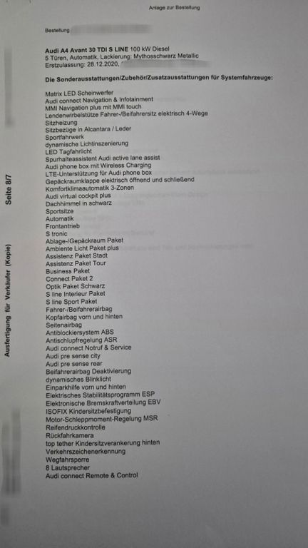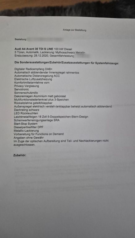 Audi A4 Avant 30 TDI S LINEMild-Hybrid 100 kW Diesel 5 Türen, Automatik, Lackierung: Mythosschwarz Metallir Erstzulassung: 28.12.2020, Gesamtfahrleistung 101.500km