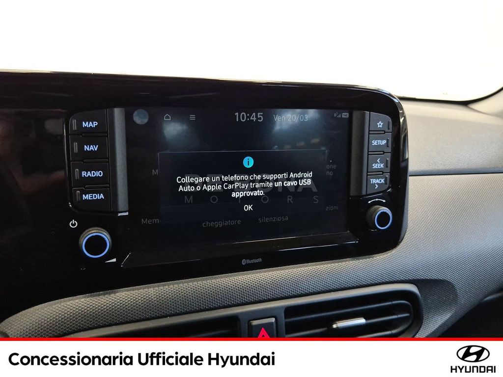 Concessionaria Ufficiale di vendita e assistenza. Contattaci per verificare la disponibilità dell'auto nella sede più vicina. Prezzo da intendersi escluso passaggio di proprietà. Vuoi sapere tutto su questo veicolo? Contattaci e comunicaci il CODICE VEICOLO:[Rif. U-Infinity01#522916-U]ALTRI OPTIONALS: 2 Airbag a tendina, 2 Airbag anteriori, 2 Airbag laterali, 5 Anni Di Garanzia / Km Illimitati, Altoparlanti anteriori e posteriori, Alzacristalli elettrici anteriori con funzione Up amp; Down Safety per guidatore, Alzacristalli Elettrici Posteriori, Antifurto Con Radiocomando A Distanza E Immobilizer, Attacchi ISOFIX, Bluetooth, Cerchi in lega leggera da 15 quot; con pneumatici 185/55 R15, Climatizzatore Manuale, Comandi audio al volante, Cruise Control, E-Call, Fendinebbia anteriori, Freni a disco anteriori, Griglia radiatore nero lucido, Hyundai Smart Sense, Kit Gonfiaggio Pneumatici, Luci diurne e di posizione a LED, Maniglie esterne e specchietti retrovisori in tinta con la carrozzeria, Presa Ausiliaria 12V, Sedile guidatore regolabile in altezza, Sedile Posteriore Abbattibile Con Modulo 60:40, Sedili rivestiti in tessuto, Sensore crepuscolare, Sensori di parcheggio posteriori con retrocamera, Sistema di assistenza alla partenza in salita (H.A.C.), Sistema di assistenza anti-collisione frontale con riconoscimento veicoli, pedoni e ciclisti (F.C.A.), Sistema di controllo della stabilità (E.S.C.), Sistema di frenata anti bloccaggio (A.B.S.), Sistema di gestione automatica dei fari abbaglianti (H.B.A.), Sistema di mantenimento attivo della corsia (L.K.A./L.F.A.), Sistema di monitoraggio pressione gomme (T.P.M.S.), Sistema di navigazione con display touchscreen da 8 quot; con connettività apple carplay e android auto, Sistema di riconoscimento dei limiti di velocità (I.S.L.A./M.S.L.A.), Sistema di riconoscimento presenza passeggeri posteriori (R.O.A.), Sistema di rilevamento della stanchezza del conducente (D.A.W.), Sistema ISG quot;idle stop amp; go system quot;, Specchietti retrovisori riscaldabili e regolabili elettricamente, Spoiler posteriore, Strumentazione LCD con Cluster TFT centrale da 4.2 quot;, USB per la ricarica, Volante regolabile in altezza, Volante rivestito in pelle
