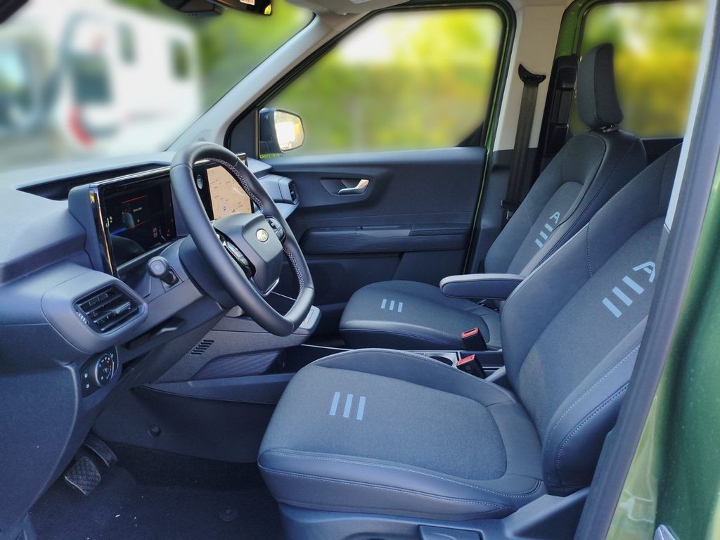 - Weiteres: USB-Anschluss, Geschwindigkeits-Regelanlage (Tempomat), Reifendruck-Kontrollsystem, Scheibenwischer mit Regensensor, LM-Felgen, Audiosystem: Radio, Heckleuchten LED, Frontscheibe heizbar, Dachreling silber, Induktionsladeschale für mobile Endgeräte, Seitenairbag vorn mitte (Interaktionsairbag), Reifen-Reparaturkit, Radstand Standard, FordPass Connect inkl. eCall, Sitz vorn links verstellbar (4-fach), Gepäcksicherungsnetz, Sprachsteuerung und Bluetooth-Schnittstelle, Radioempfang digital (DAB), HV-Batterie 54 kWh, Schiebetüren beidseitig, Winter-Paket 2, Zentralverriegelung mit Fernbedienung, Dach andersfarbig lackiert / Kontrastfarbe, Spannungswandler 220V, Außenspiegel elektr. verstell- und heizbar, Nebelscheinwerfer, Parkpilotsystem vorn und hinten, Seitenairbag vorn, Airbag Fahrer-/Beifahrerseite, Fenster elektr. betätigt, in Schiebetür links, Fenster elektr. betätigt, in Schiebetür rechts, Fensterheber elektrisch vorn, mit Auf-/Ab-Automatik, Intelligenter Geschwindigkeits-Begrenzer, Tagfahrlicht LED, 12V-Steckdose im Laderaum, Antriebsart: Frontantrieb, Armlehne für Fahrersitz, Audio-Paket 2, Außenspiegel elektr. anklappbar, Beifahrerairbag abschaltbar, Bord-/Verbrauchscomputer, Elektromotor 100 kW, Elektron. Stabilitäts-Programm, Falschfahrer-Warnfunktion, Farbdisplay (12 Zoll), Gurtwarner hinten, Heckklappe verglast, Heckscheibe heizbar, Heckscheibenwischer, Isofix-Aufnahmen für Kindersitz, Karosserie/Aufbau: Kombi, Klimaautomatik, Kopf-Schulter-Airbag vorn, Kühlergrill schwarz, Lendenwirbelstütze vorn links, Lenkrad heizbar, Leseleuchte, Mittelkonsole lang, Parkbremse elektrisch, Power KeyFree-Startfunktion, Pre-Collision-System, Scheinwerfer mit Abblendautomatik, Schiebetür rechts, Sicherheitssystem SYNC mit automatischem Notruf, Sitzheizung vorn, Sitz-Paket 1B / 11 / 37 / 43, Sitz-Paket 20, Sonnenblende rechts mit Spiegel, Spiegel schwarz lackiert, Spurfolgeassistent (Lane Following Assist, LFA), Spurhalteassistent, Türgriffe lackiert, Unterfahrschutz (Motor), Unterfahrschutz hinten, Verkehrsschildassistent, Warnanlage für Sicherheitsgurte vorn, ZV mit Fernbedienung