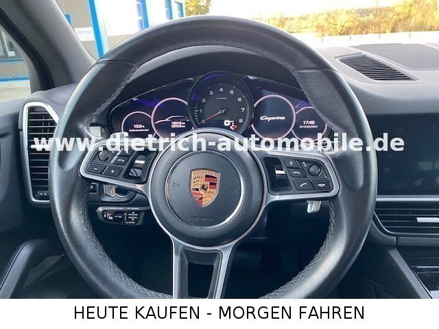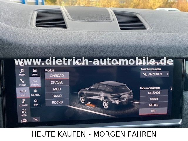 Dieser gebrauchte Porsche Cayenne aus 2019 präsentiert sich in elegantem Schwarz mit nur einem Vorbesitzer und lückenloser Servicehistorie. Der leistungsstarke SUV mit 340 PS und Allradantrieb bietet höchsten Fahrkomfort durch Luftfederung und dynamische Fahrwerksregelung. Die umfangreiche Ausstattung umfasst ein 3-Zonen-Klimaautomatik, elektrische Heckklappe, Panorama-Glasdach und beheizbare Vorder- und Rücksitze. Das Sportpaket mit Sportsitzen und Schaltwippen am Lenkrad unterstreicht den sportlichen Charakter. Modernste Technologien wie digitales Cockpit, Head-up-Display, Navigationssystem, Apple CarPlay und Android Auto sorgen für Konnektivität und Bedienkomfort. Zahlreiche Assistenzsysteme wie adaptiver Tempomat, Spurhalteassistent, Totwinkelwarner und Kollisionsvermeidung erhöhen die Sicherheit. Die schwenkbare Anhängerkupplung ermöglicht eine gebremste Anhängelast von 3500 kg.Sonderausstattung: