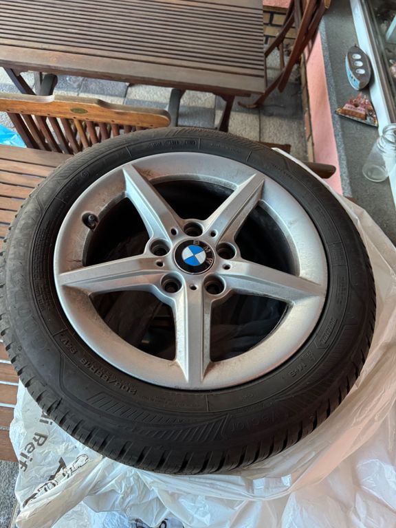 8-fach Bereifung (aktuell Winterreifen auf RONAL-Alu; es sind aber auch neuwertige Ganzjahresreifen von Good Year DOT 0925 auf originalen BMW dabei, sofern der angesetzte Preis gezahlt wird)