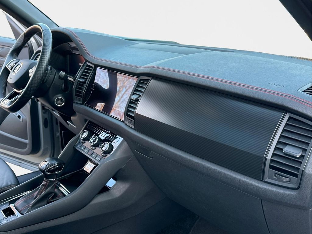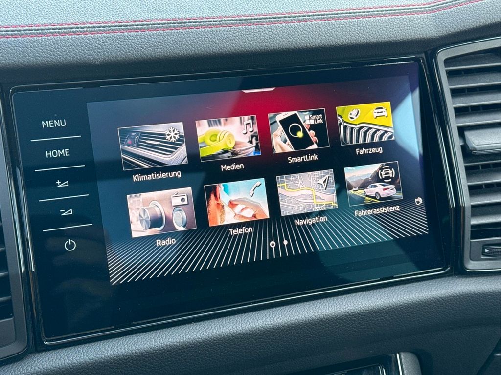 Dieser Skoda Kodiaq mit 245 PS und Allradantrieb überzeugt als vielseitiger 7-Sitzer mit umfangreicher Serienausstattung. Erstmals zugelassen im Jahr 2022, hatte das Fahrzeug bisher nur einen Vorbesitzer und verfügt über eine vollständige Servicehistorie. Das Automatikgetriebe harmoniert mit dem Vierzylinder-Benziner (Euro 6d), der E10-kompatibel ist. Die schwarze Lederausstattung mit Sportsitzen, elektrisch verstellbaren und beheizten Sitzen sowie Memoryfunktion sorgt für hohen Komfort. Das Panoramadach und das Ambiente-Licht unterstreichen die hochwertige Innenraumgestaltung.