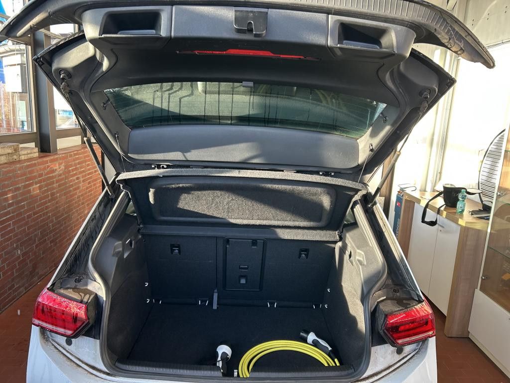 Airbag Fahrer-/Beifahrerseite, Beifahrerairbag abschaltbar, Akustischer Fußgängerschutz, Außensound (e-sound), Ambiente-Beleuchtung (30 Farben), Antennen-Diversity, App-Connect inkl. App-Connect Wireless (Apple CarPlay, Android Auto), Armlehnen für Fahrer- und Beifahrersitz, Audiosystem Ready 2 Discover (inkl. Streaming & Internet, Touchscreen, Bluetooth), Ausstattung Basis, Außenspiegel asphärisch, links, Außenspiegel konvex, rechts, Bremsassistent, Dach in Kontrastfarbe, Dachzierleiste, Lufteinlässe vorn und Seitenschweller schwarz matt, Diebstahlsicherung für Räder (Felgenschlösser), Einparkhilfe vorn und hinten, Elektromotor 150 kW (cont. 70 kW), Elektron. Stabilitäts-Programm (ESP) mit Bremskraftverstärker elektro-mechanisch, Fahrassistenz-System: Abbiegebremsfunktion und Ausweichunterstützung, Fahrassistenz-System: Fahrprofilauswahl, Fahrassistenz-System: Müdigkeitserkennung, Fahrassistenz-System: Spurhalteassistent (Lane Assist), Fahrassistenz-System: Umfeldbeobachtungssystem (Front assist) mit City-Notbremsfunktion, Fahrassistenz-System: Verkehrszeichenerkennung, Frontscheibe Verbundglas getönt, Getriebe für Elektrofahrzeug, Getränkehalter vorn, Heckleuchten LED, HV-Batterie 82 kWh brutto / 77 kWh netto, Innenausstattung: Bedienelemente und Einfassung Instrumente schwarz, Innenraumfilter: Aktiv Kombifilter, Isofix-Aufnahmen für Kindersitz an Beifahrersitz und Rücksitz (inkl. i-Size-Kindersitze), Karosserie: 5-türig, Keyless-Start, Klimaanlage Climatronic 1-Zonen, Kopfstützen hinten (3-fach), Ladekabel mit Typ 2-Stecker (Mode 3, 16 A), Ladeleistung HV-Batterie 11 kW (Wechselstrom AC), Ladeleistung HV-Batterie 125 kW (Gleichstrom DC), Lautsprecher (5), Lenksäule (Lenkrad) mechan. verstellbar, Höhen-/Längsverstellung, LM-Felgen, Mobiltelefon Schnittstelle Comfort mit kabelloser Ladefunktion, Notrufsystem, Pedale Edelstahl, Radioempfang digital (DAB+), Reifenkontroll-Anzeige, Rücksitzlehne geteilt mit Mittelarmlehne, Scheinwerfer LED inkl. Automatische Fahrlichtschaltung, Schnellladevorrichtung (CCS-Ladedose), Seitenairbag vorn mit Center-Airbag und Kopf-Airbag-Einheit, Service-System: Intelligente Fahrzeugvernetzung (Car2X), Service-System: Online Update, Servolenkung elektro-mechanisch und geschwindigkeitsabhängig, Sicherheitsgurte vorn mit Gurtstraffer, Sitz vorn links höhenverstellbar, Sitzausstattung: 4-Sitzer, Sitzbezug / Polsterung: Stoff / Mikrovlies ArtVelours, Sonnenblenden mit Spiegel (beleuchtet), Sprachsteuerungs-System, Türverkleidung Kunstleder, Verbandkasten und Warndreieck, Warnanlage für Sicherheitsgurte vorn und hinten, Wärmeschutzverglasung grün getönt (seitlich / hinten), Sitze: Top-Sportsitze vorn