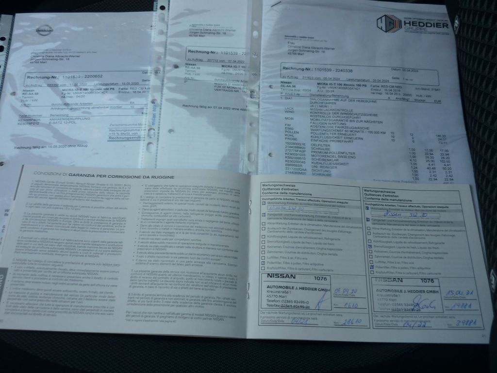 - Lückenlos Nissan Scheckheftgepflegt , alle Rechnungen vorhanden , letzter grosser Nissan-Service bei 51400 in 04/2024 , frischer Ölservice durch uns bereits durchgeführt in 04 / 2026 , Bremsscheiben und Klötze vorn vor kurzem erneuert , Tüv und Au wird bei Verkauf neu gemacht !