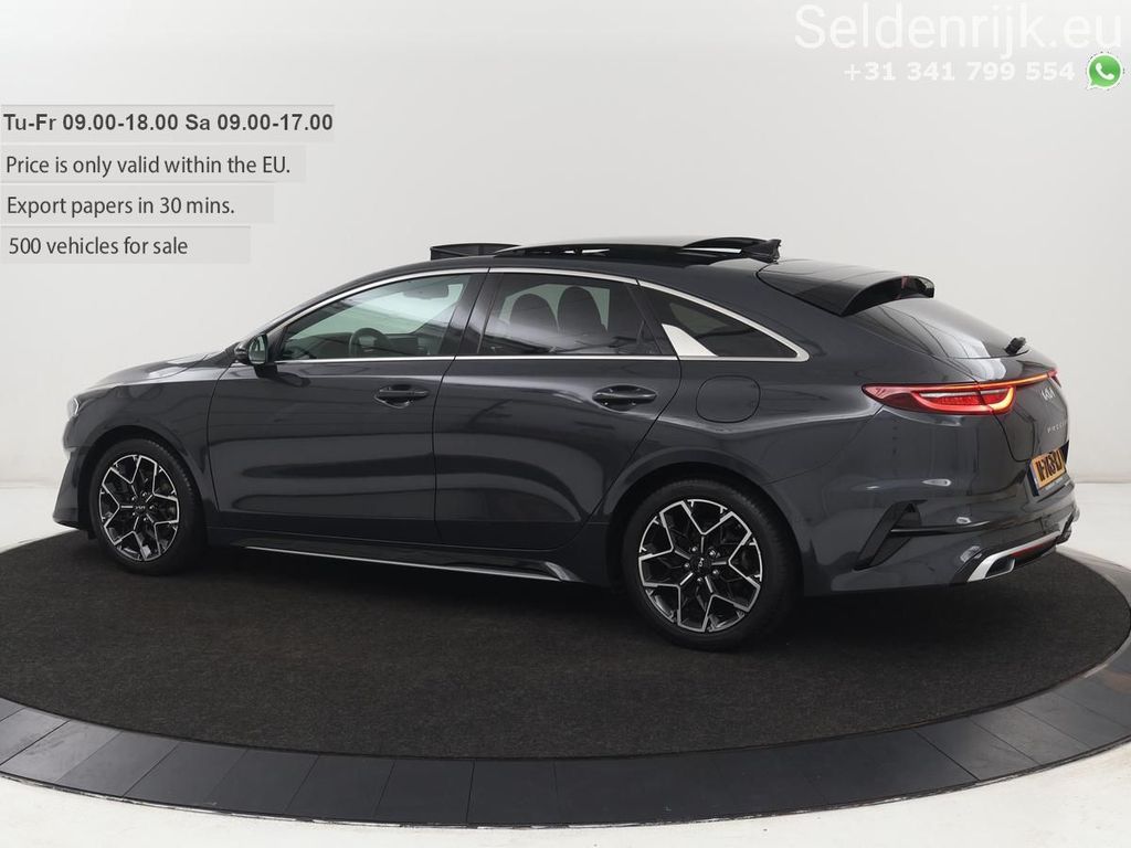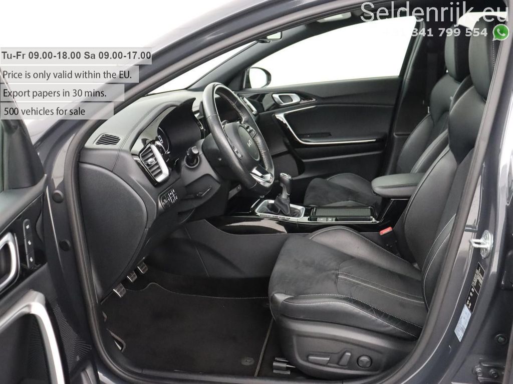 Informationen auf Deutsch:Lassen Sie sich nicht täuschen, dieser Kia ProCeed bietet alles, was Sie sich von einem Auto wünschen. Dieses Modell stammt aus dem Jahr 2021. Der Kia wird von einem Vierzylinder-Benzinmotor und einem Sechsgang-Schaltgetriebe angetrieben. Legen Sie Wert auf ein luxuriöses Erscheinungsbild? Dann ist die Lederausstattung ein besonders attraktives Extra! Egal wie kalt es draußen ist, das beheizbare Lenkrad sowie die beheizbaren Vorder- und Rücksitze sorgen dafür, dass sich alle Insassen schnell aufwärmen. Die stilvollen Sportsitze bieten Ihnen auch in scharfen Kurven optimalen Halt. Dank des elektrischen Panorama-Schiebedachs erstrahlt der Innenraum bei Tageslicht. Die elektrische Heckklappe öffnet sich auf Knopfdruck und ermöglicht Ihnen einen bequemen Zugang zum Gepäckraum. Zu den weiteren Ausstattungsmerkmalen dieses Fahrzeugs gehören: 17-Zoll-Leichtmetallfelgen, LED-Scheinwerfer, extra getönte Scheiben, geteilt umklappbare Rücksitze, LED-Rückleuchten und eine verstellbare Lordosenstütze.