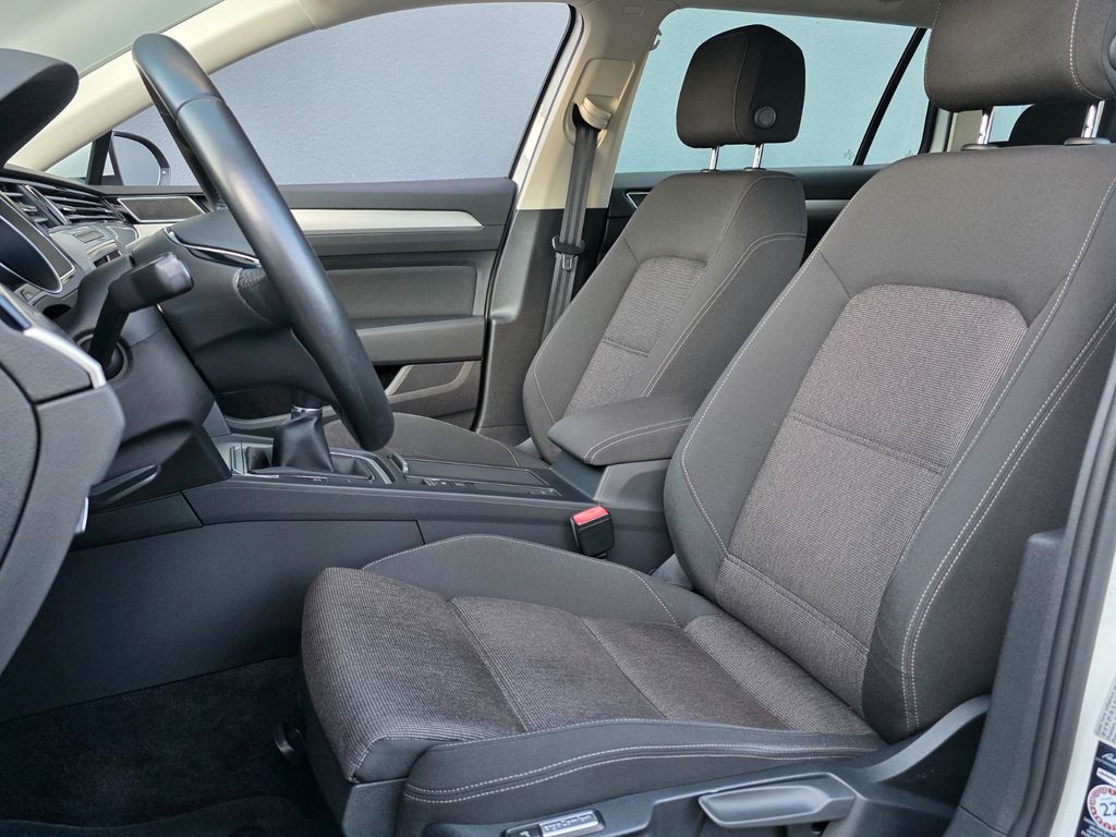 Dieser gepflegte VW Passat Variant aus 2017 mit nur einem Vorbesitzer überzeugt durch seine umfangreiche Ausstattung und moderne Technik. Der 150 PS starke Dieselmotor mit Frontantrieb und manuellem Getriebe bietet eine ausgewogene Kombination aus Leistung und Wirtschaftlichkeit. Die weiße Metallic-Lackierung harmoniert perfekt mit dem schwarzen Stoffinterieur. Besonders komfortabel wird die Fahrt durch die 3-Zonen-Klimaautomatik, elektrisch verstellbare Sitze mit Massagefunktion und Lendenwirbelstütze sowie beheizbare Vordersitze.Der Passat punktet mit modernster Sicherheitstechnologie: LED-Scheinwerfer mit Kurvenlichtfunktion, adaptive Geschwindigkeitsregelung, Müdigkeitserkennung und Kollisionsvermeidungssystem. Für Unterhaltung und Konnektivität sorgen das Navigationssystem, Touchscreen, Apple CarPlay, Android Auto und DAB-Radio. Die schwenkbare Anhängerkupplung ermöglicht eine gebremste Anhängelast von 2000 kg.