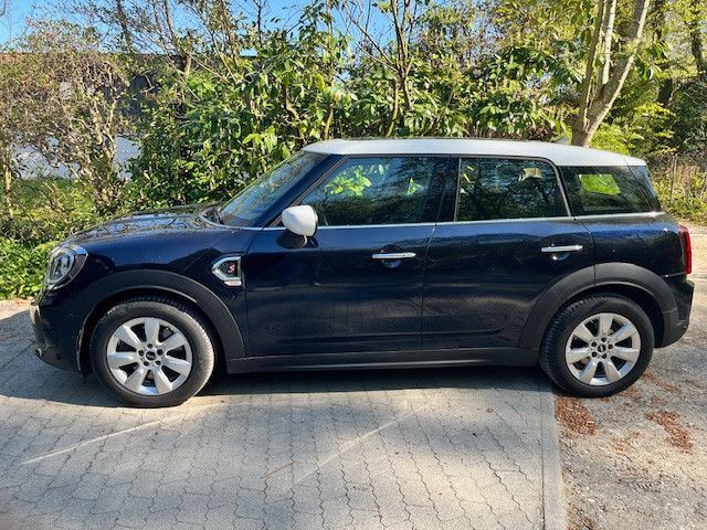 Attraktiver Countryman SD, Allrad, Automaik mit Steptronik und adaptivem Fahrwerk.Nachtblaue Sonderlackierung (Midnight black), Dach und Außenspiegel weiß, silberne Original-MINI-Felgen, verchromte Griffe.