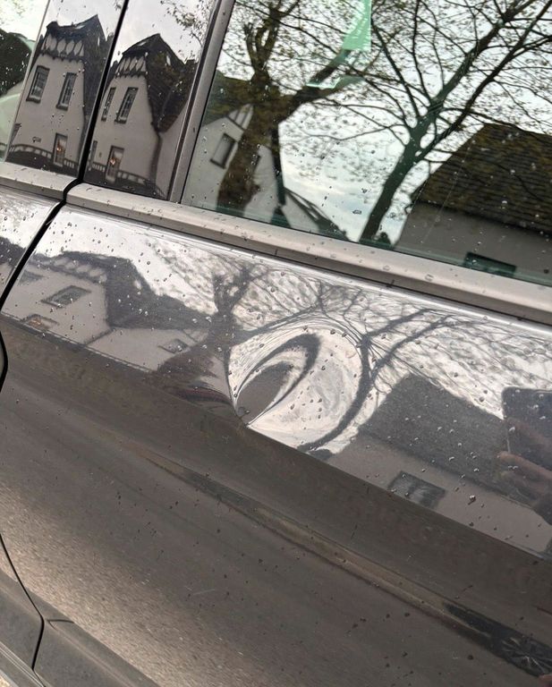 Die Tür hinten links hat eine kleine Beule und an der Stoßstange hinten sind links und rechts Macken was aber 400 kosten würde instand zu setzen .