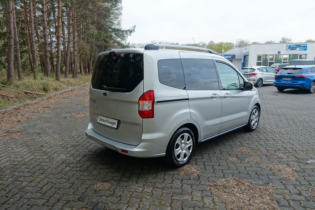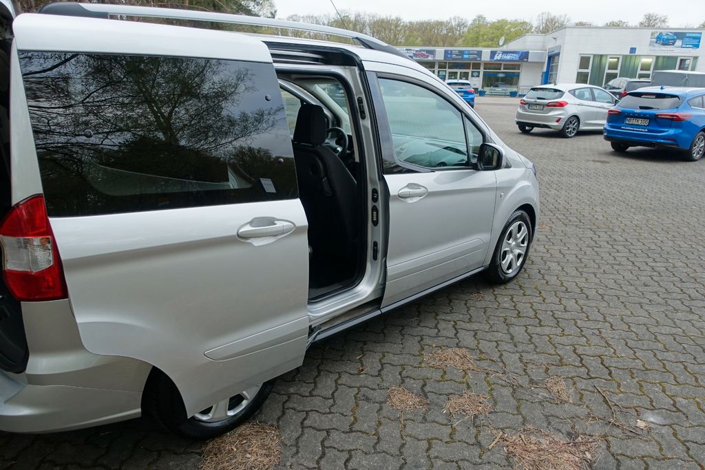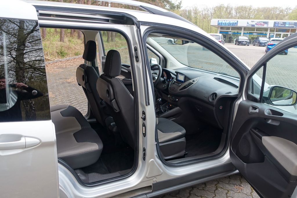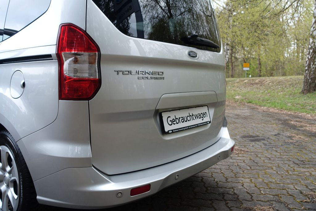 Dieser Ford Tourneo Courier aus Erstzulassung 2019 präsentiert sich in gepflegtem Zustand mit nur einem Vorbesitzer, vollständiger Servicehistorie sowie frisch durchgeführter HU/AU. Der 998-cm³-Dreizylinder-Benziner mit 101 PS und Schaltgetriebe erfüllt die Abgasnorm Euro 6d-temp und ist E10-kompatibel. Als vielseitiger Fünfsitzer mit Dachreeling und Laderaumtrennwand eignet er sich gleichermaßen für den Alltag wie für den Transport.Die Serienausstattung überzeugt mit manueller Klimatisierung, beheizbaren Sitzen, elektrischen Fensterhebern und elektrisch verstellbaren Außenspiegeln. Für Sicherheit sorgen ABS, ESP, Berganfahrhilfe, Reifendruckkontrolle sowie Front- und Seitenairbags. Das Infotainmentsystem umfasst Bluetooth, DAB-Radio, USB-Anschluss, Sprachsteuerung und Freisprechanlage. Einparkhilfen vorne und hinten sowie ein Notrufsystem runden das Sicherheitspaket ab.
